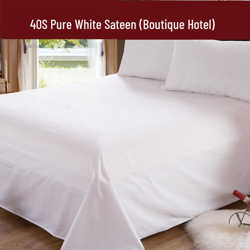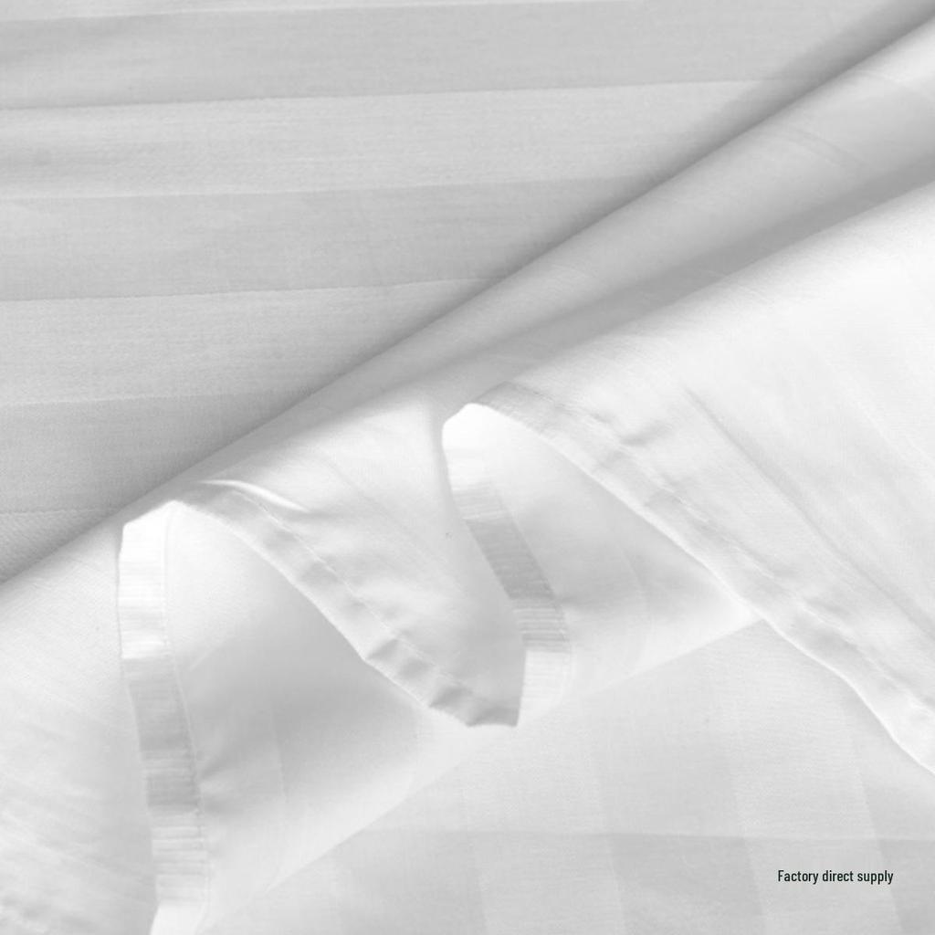 Hotel-Grade White Cotton Fitted Sheet with Three-Centimeter Stripe