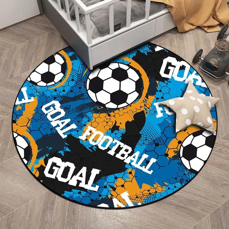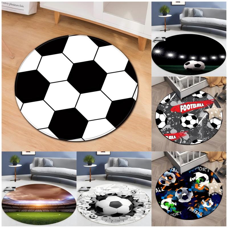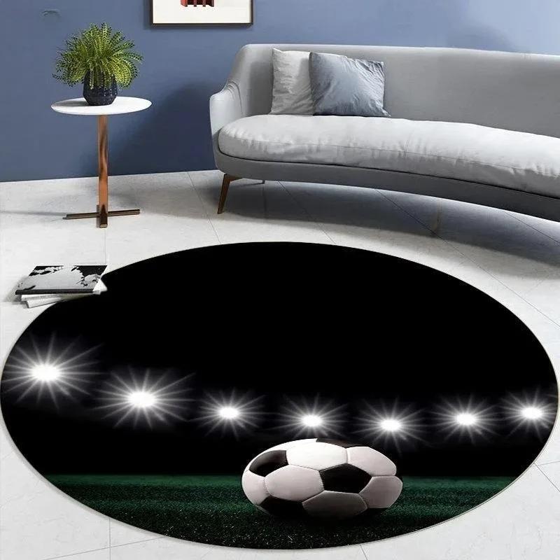 Soccer Ball Round Area Rug – Football Game Theme Carpet – Non-Slip Floor Mat for Living Room or Kids' Room, Washable Home Decor
