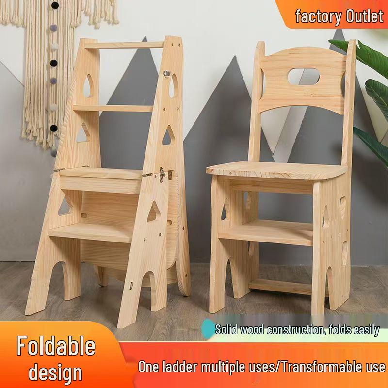 Многофункциональная складная подставка для ног и стул-лестница из массива дерева