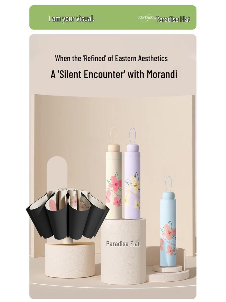 Зонт Paradise Защита от УФ-лучей Женский Мультяшный Солнцезащитный: Легкий, Портативный Черный Клей Складной Зонт для Дождя или Солнца