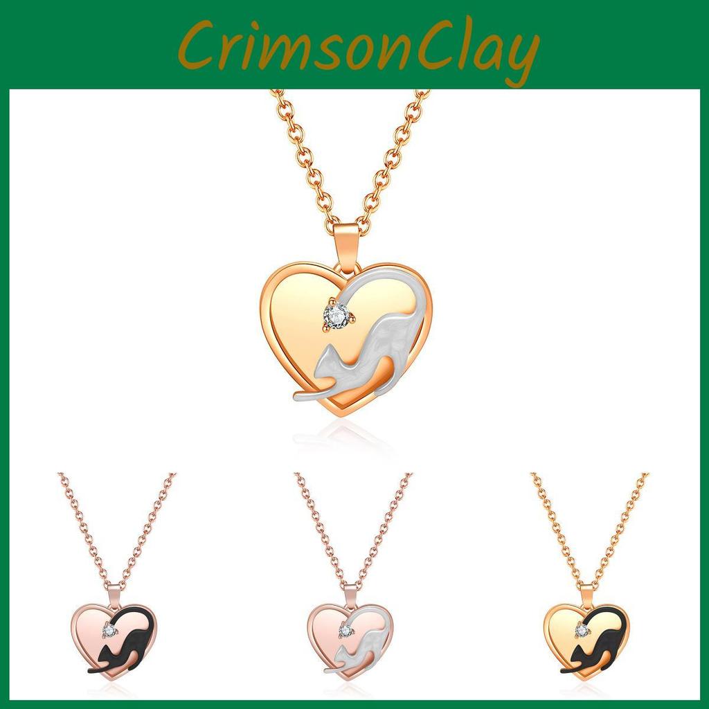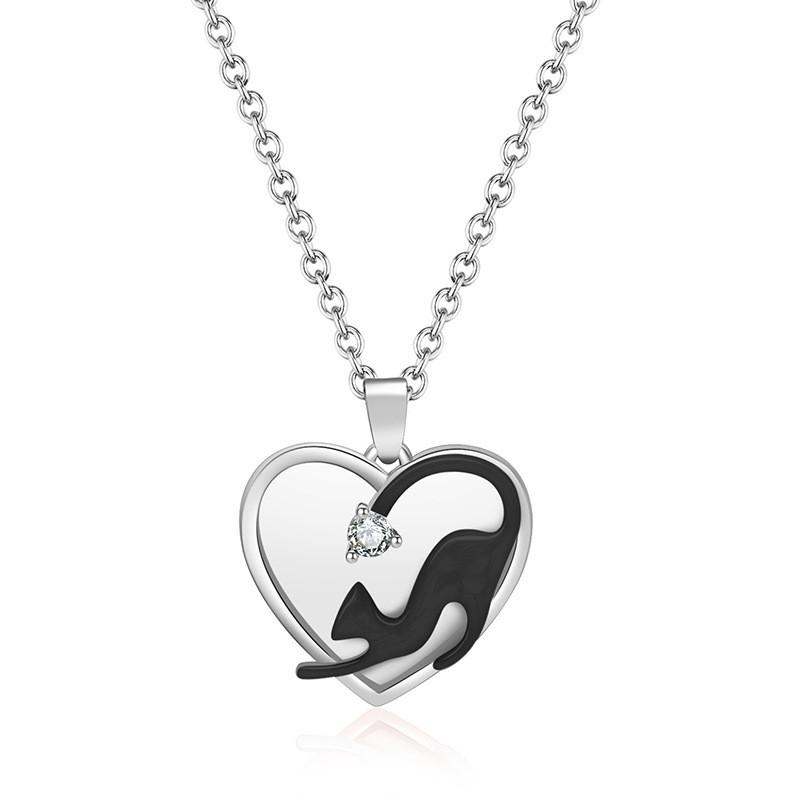 Модное двухслойное ожерелье с подвеской в виде сердца и кошки из сверкающей титановой стали для элегантного подарка