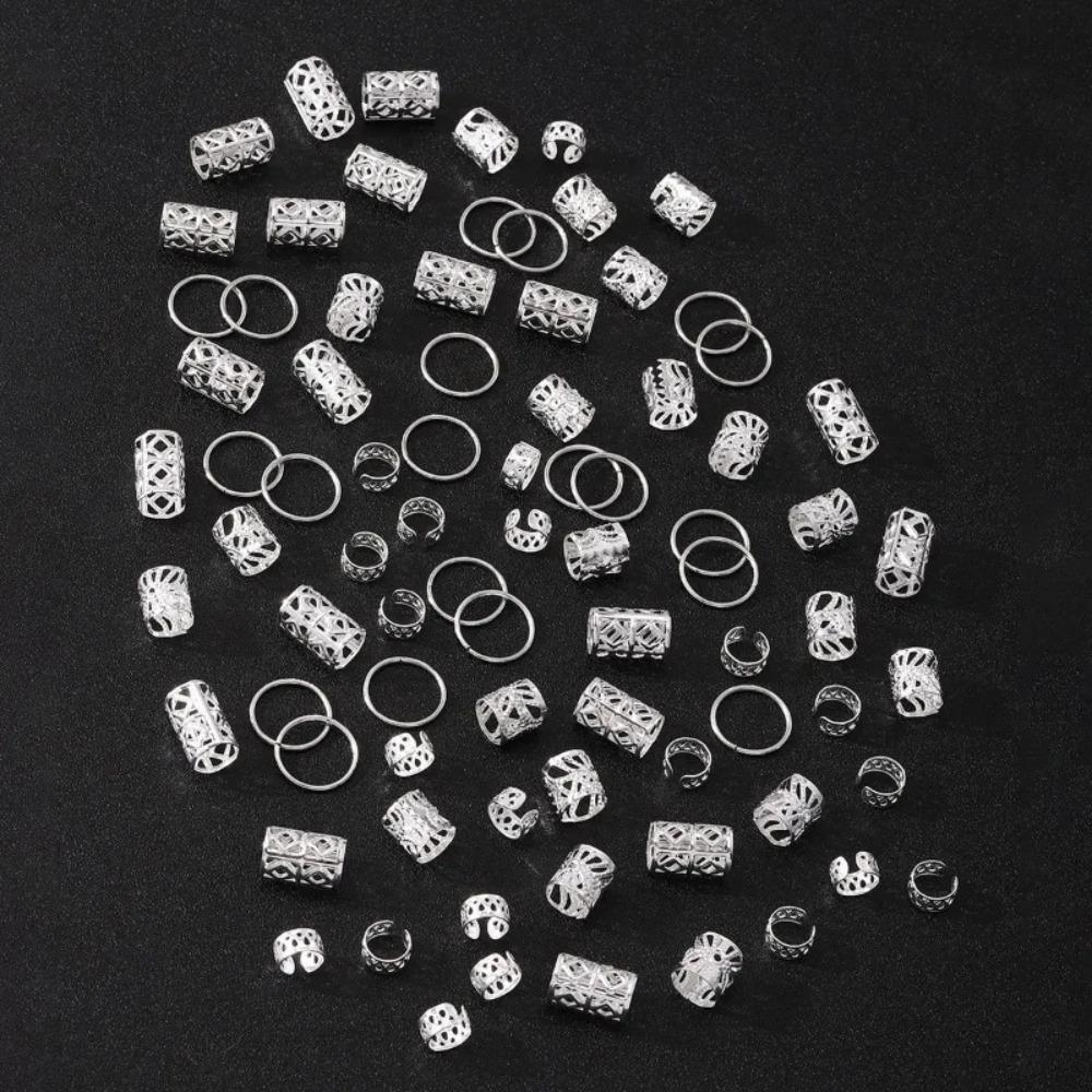80pcs Metal Cuff Clips Hollow Out Hair Ring Dread Locks Hair Braid Tubes Dreadlocks Beads Decor