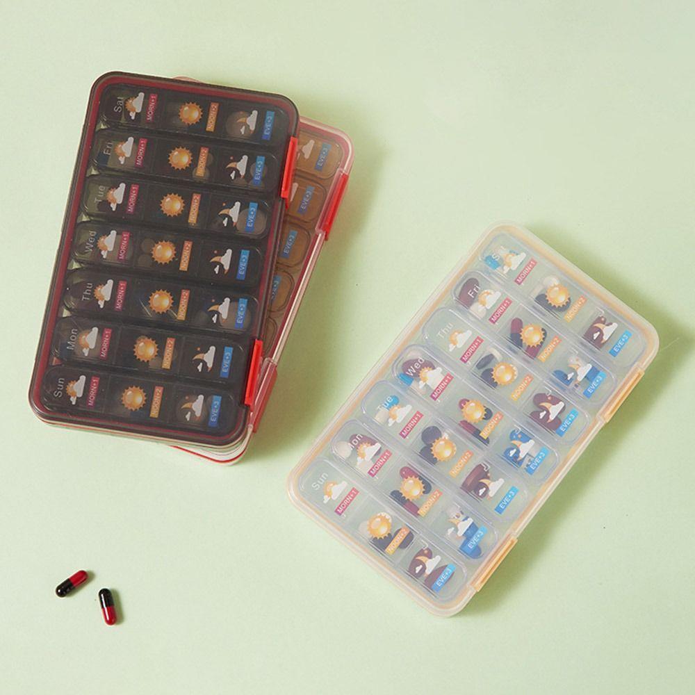Sliding Cover Design 7-Day Pill Organizer 21 Grid Medicine Storage Box for Travel Household