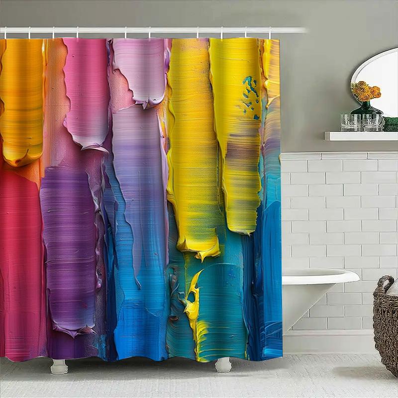 Расписанная вручную шторка для душа с принтом масляной живописи, абстрактное искусство, декор для ванной комнаты для домашних украшений в ванных комнатах, многоцветный 3D