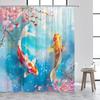 Занавеска для душа в японском стиле с кои, белый лотос, зеленые листья, озерный карп, цветочный арт, украшение для ванной комнаты, полиэстеровые шторы для ванной