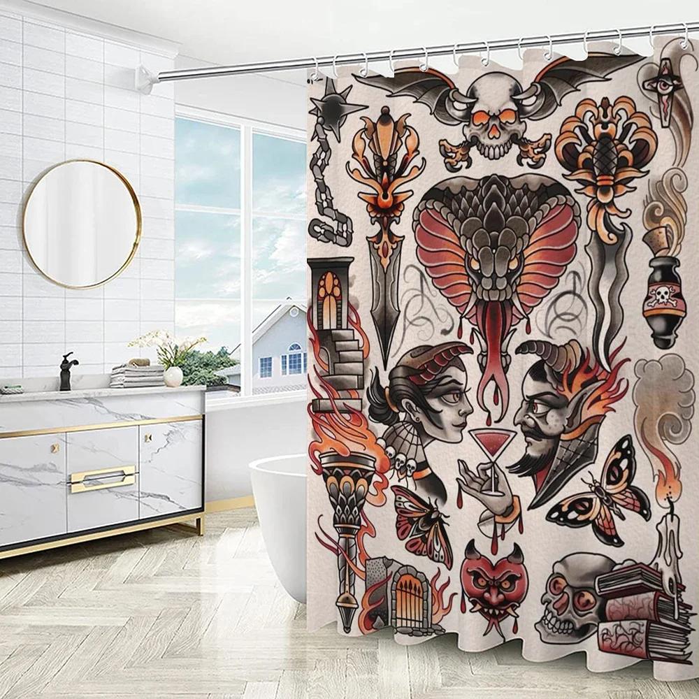 New School Tattoo European Curtain For Quarto Shower Curtains Bathroom Sets Full Set Folding Partition Accessories Bath Bedrooms