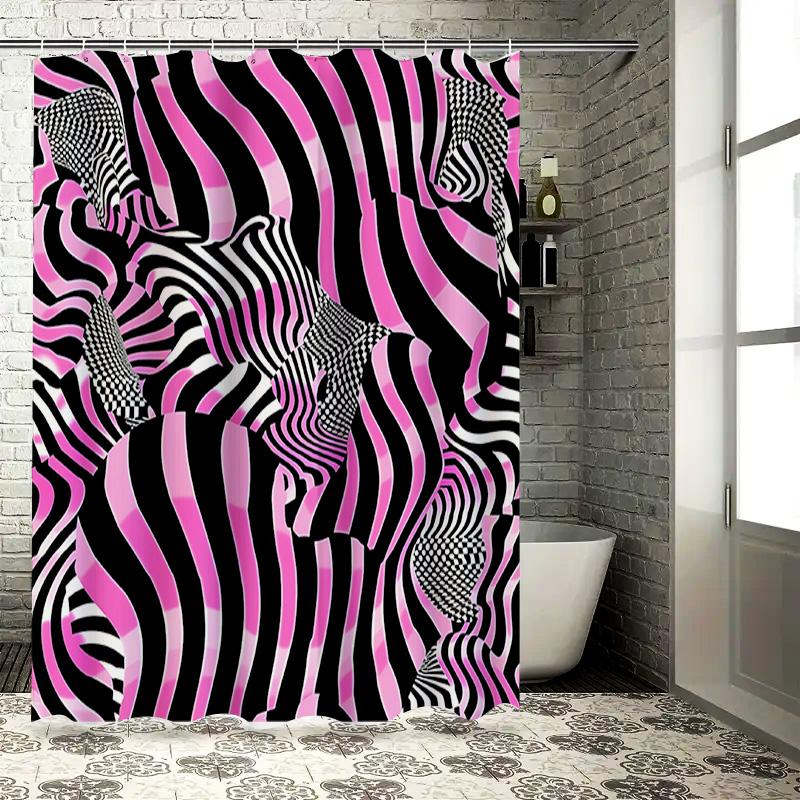 Черная розовая полосатая шторка для душа зебра для декора ванной комнаты полиэфирная ткань с кольцами держатель набор (L)