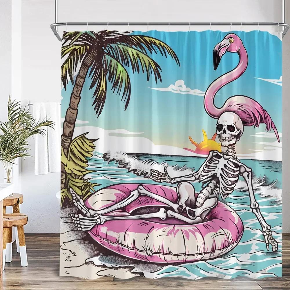 Забавная шторка для душа с костями черепа Хэллоуин Цветок Зеленые листья Украшение для ванной комнаты Винтажный череп Полиэстеровая шторка для душа