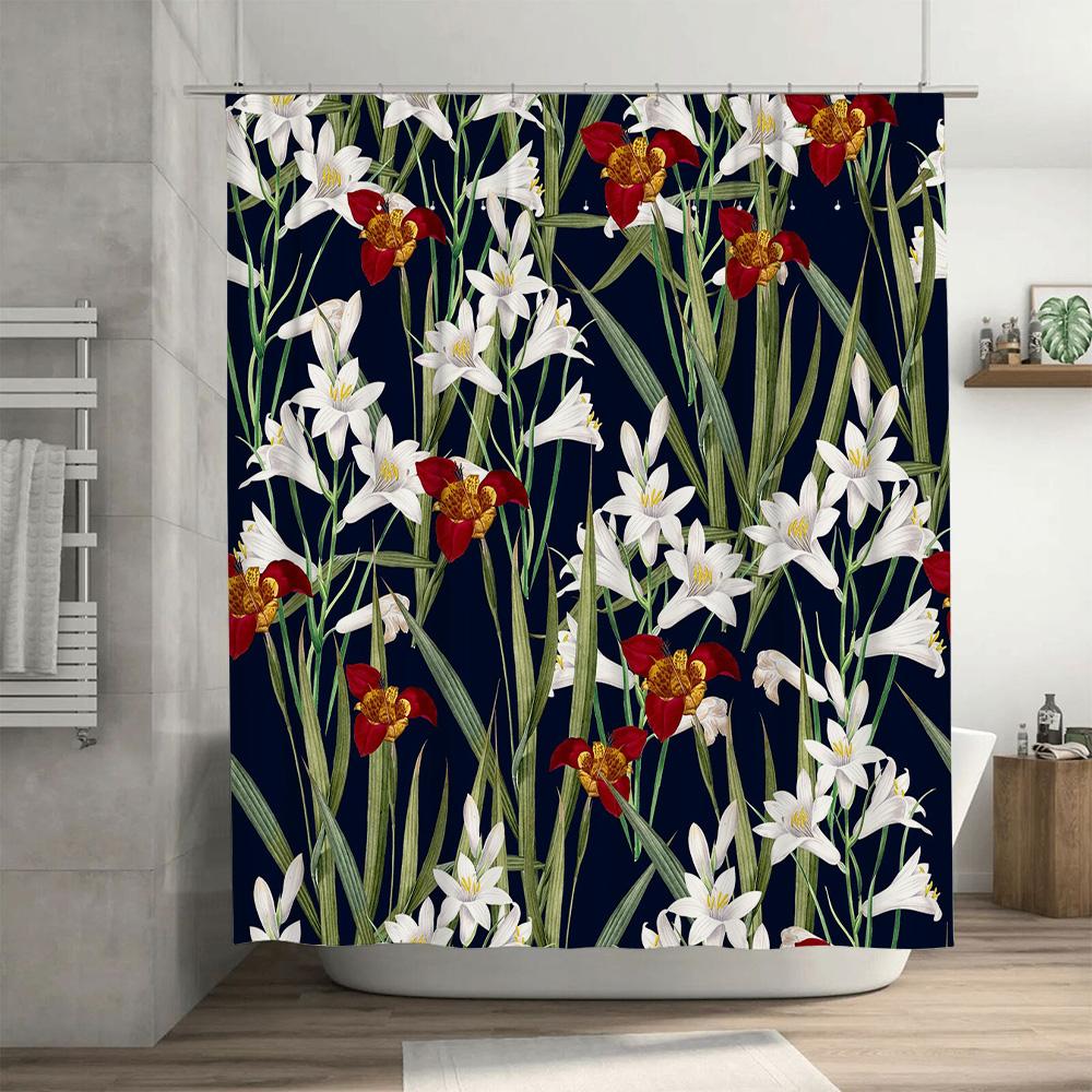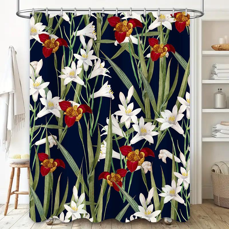 Цветочная шторка для душа Домашний декор Водонепроницаемая Декор для ванной Комната Защита от посторонних глаз Белый Красный Цветочный дизайн Шторки для душа