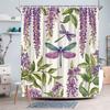 Стрекоза Занавеска для душа Рустик Фермерский дом Акварельный Цветочный Весенний Фиолетовые Цветы Смешной Полиэстер Декор для ванной комнаты Набор занавесок