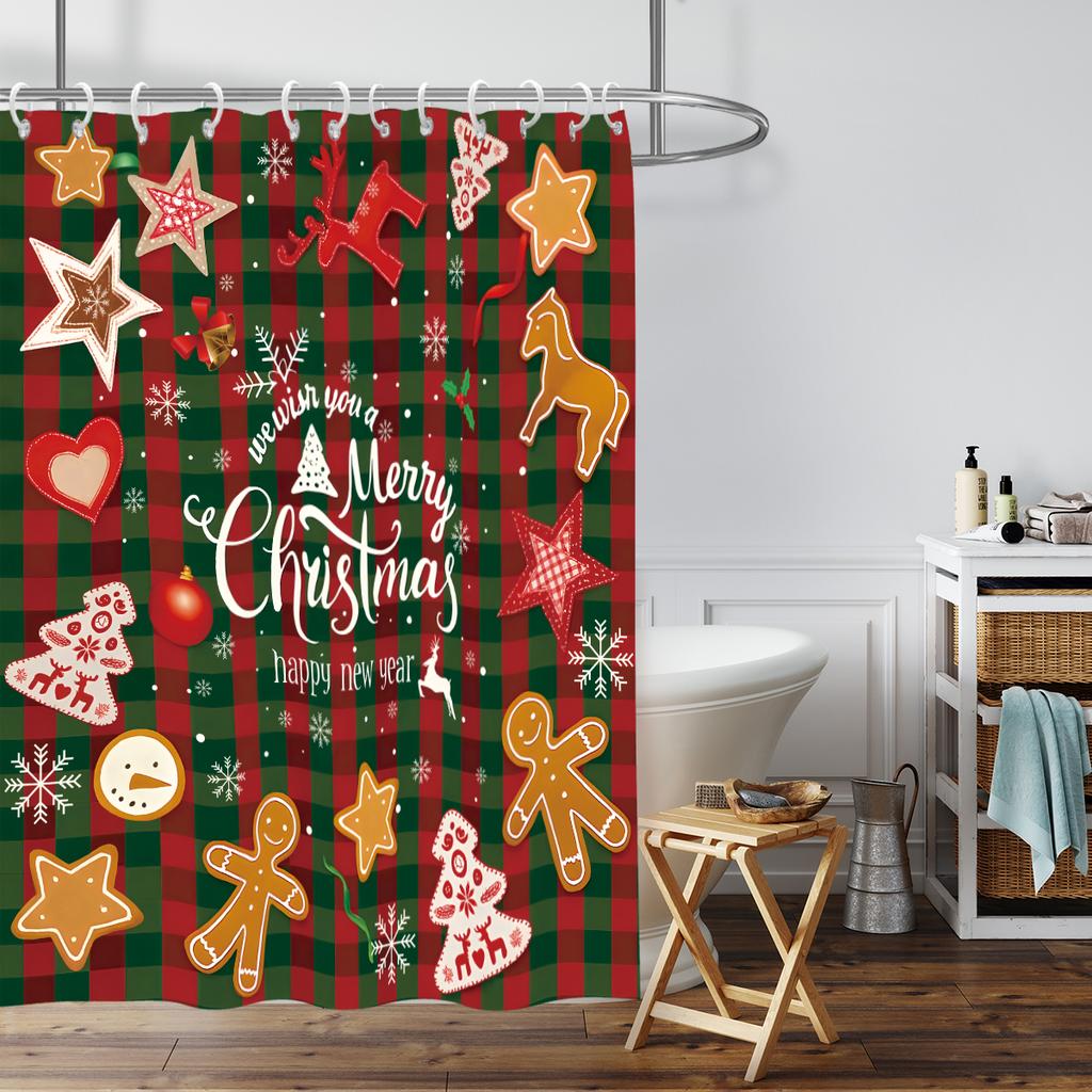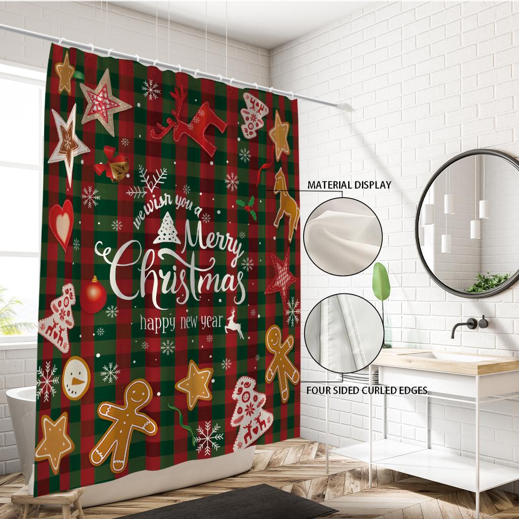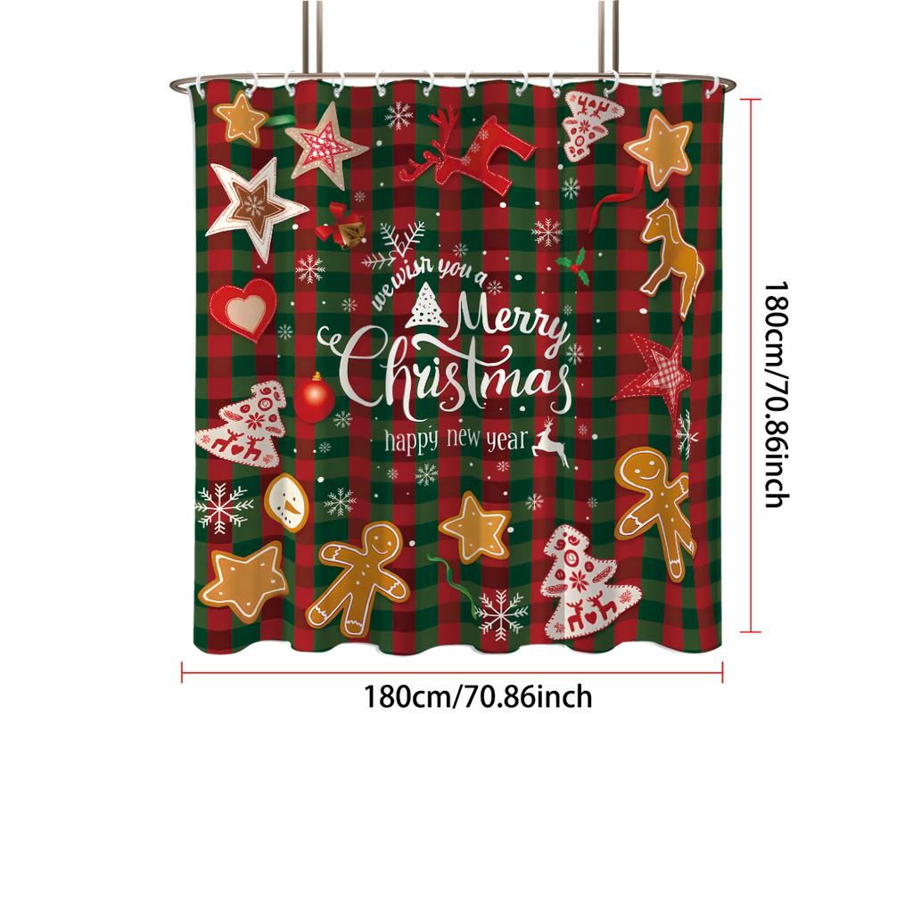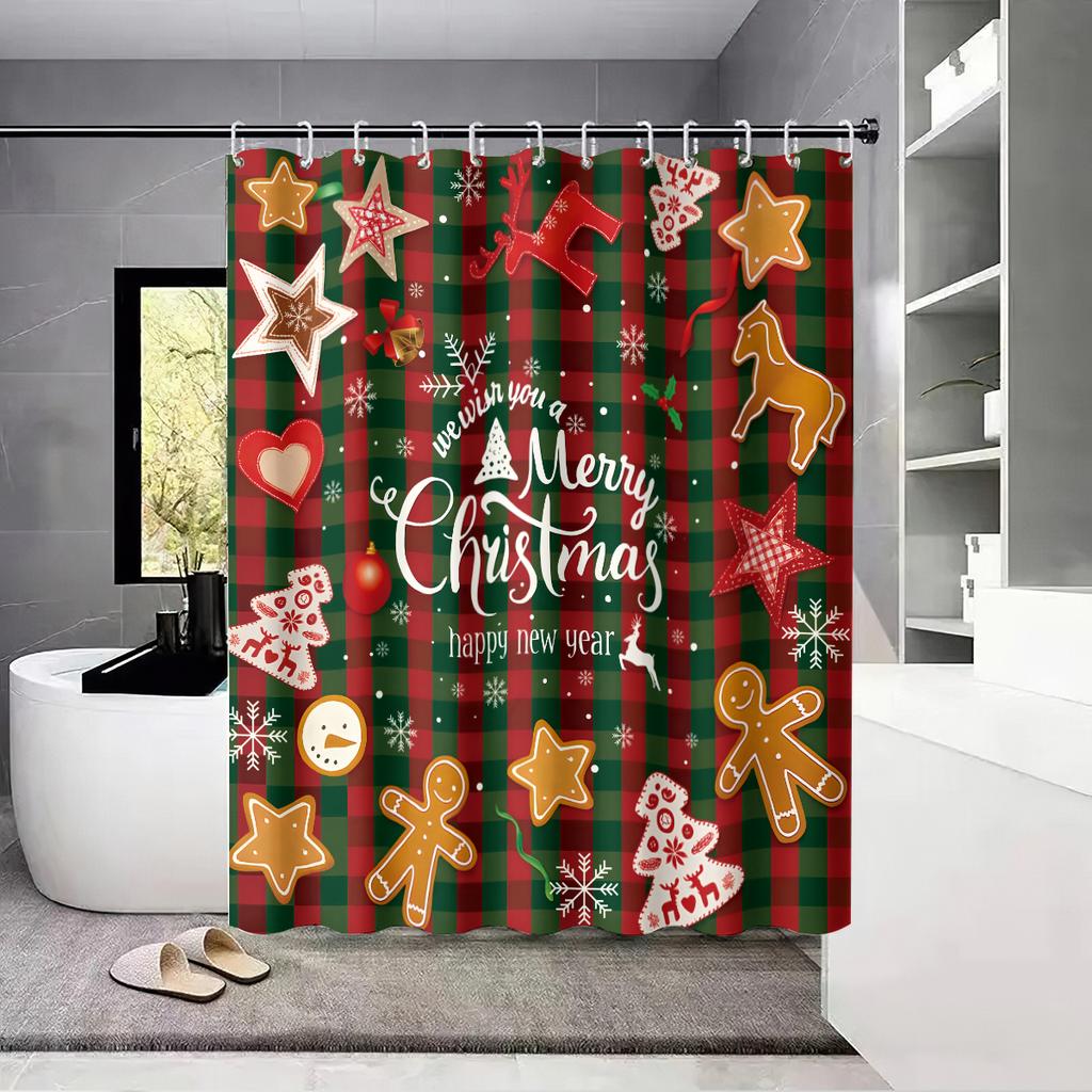1 шт. Рождественская водонепроницаемая праздничная шторка для душа с принтом имбирного пряника, перегородка для ванны, приватность, несколько размеров, 12 крючков, простая установка