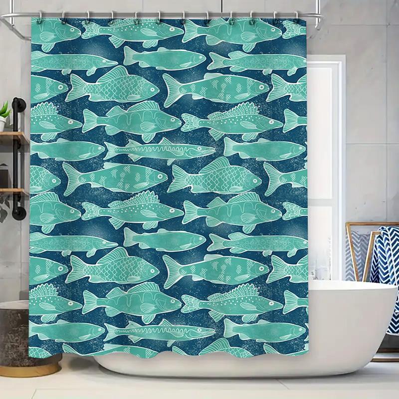 Синяя занавеска для душа с принтом рыбок из полиэстера, водонепроницаемая, для ванной комнаты, настенное украшение, аксессуары для декора дома, для душевой кабины