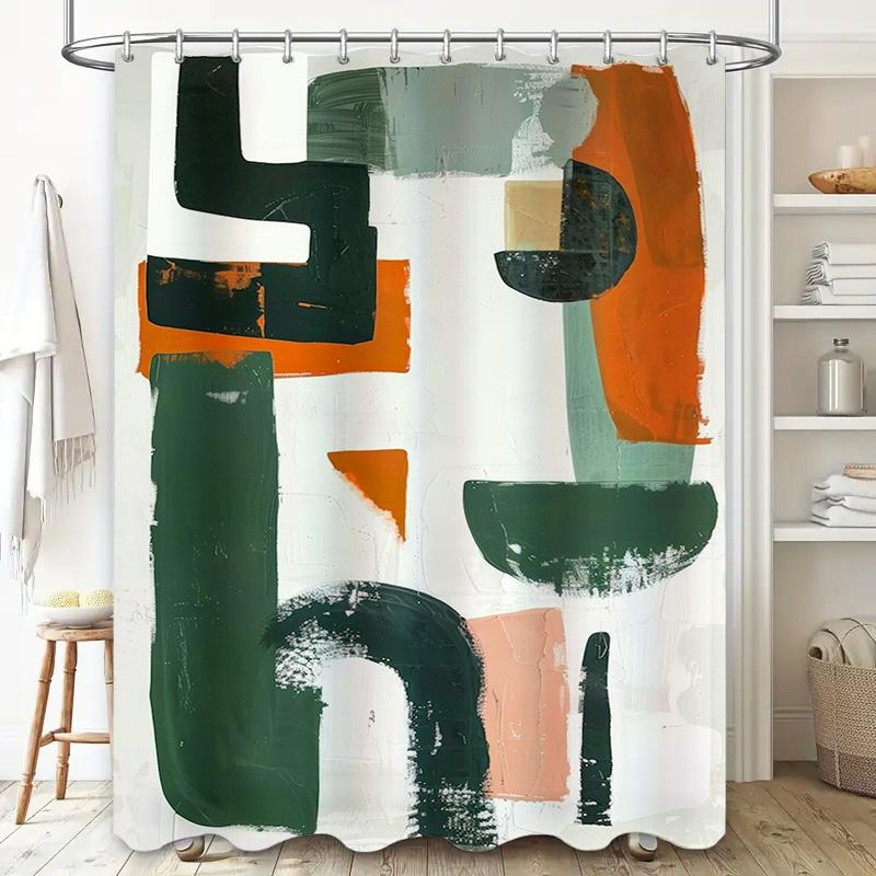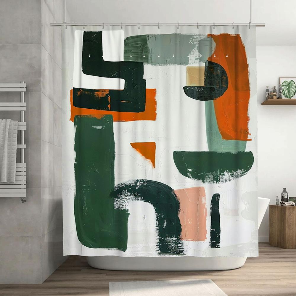 Green And White Shower Curtain Set Decor Bathroom Modern Art Print Shower Curtains For Home Decoration Waterproof Fabric Bath Li