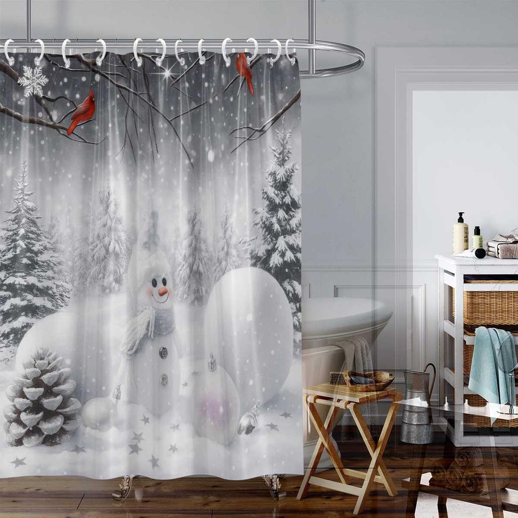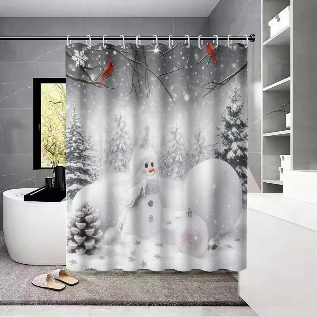 1 шт. Рождественская белая шторка для душа со снеговиком, водонепроницаемая перегородка для душа с 12 крючками, несколько размеров, машинная стирка