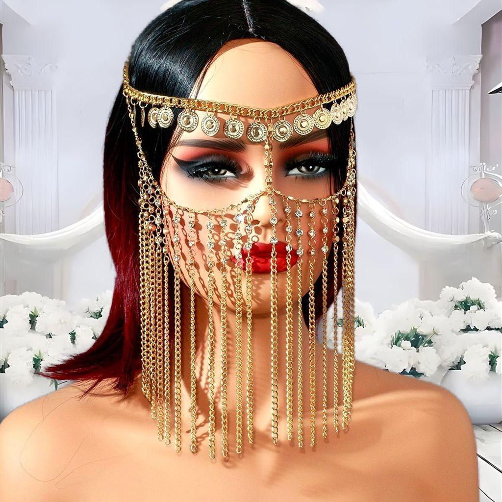 Это модное украшение для головы выполнено в виде золотистой цепочки с водными элементами и изысканными плетеными вручную кисточками, предлагая уникальный экзотический стиль.. он изготовлен из прочной воды для мерцающего эффекта. Идеально подходит для культурных мероприятий или праздничных случаев, дополняет традиционные или современные наряды.. Для сохранения блеска аккуратно протирайте поверхность мягкой тканью.