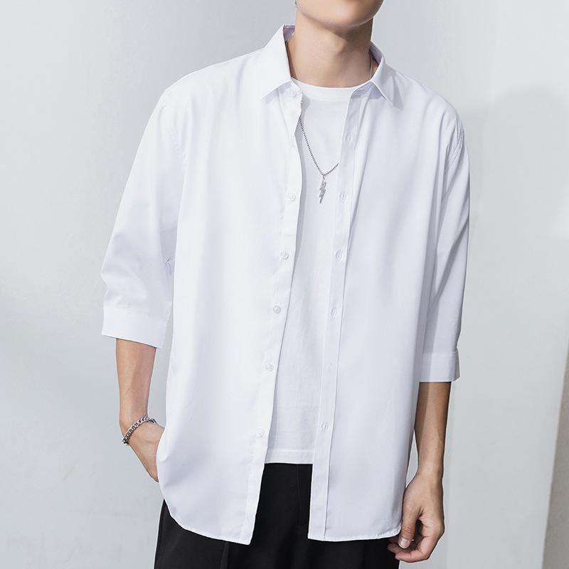 Новая рубашка с рукавом семь четвертей, мужская модная повседневная рубашка, куртка, тонкая одежда для молодых мужчин