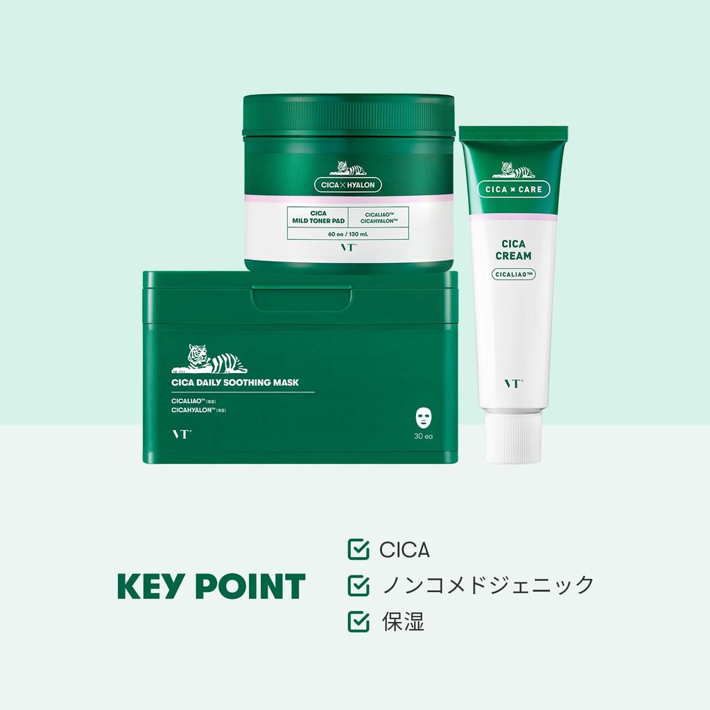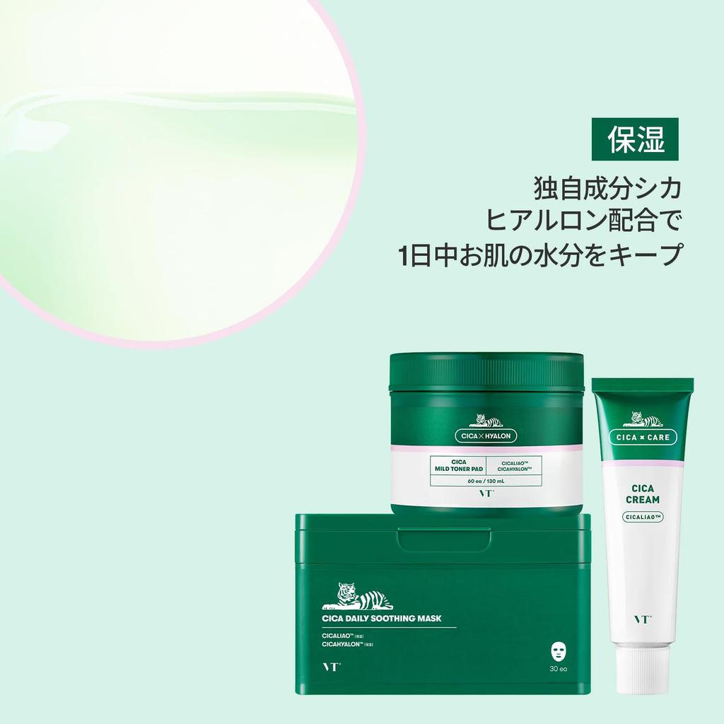 VTCOSMETICS Cica Daily Soothing Cica and Cica Mild Toner Pad Moisturizing for dry and sensitive Includes a mask pack and cleansing Best Mask, Cream,