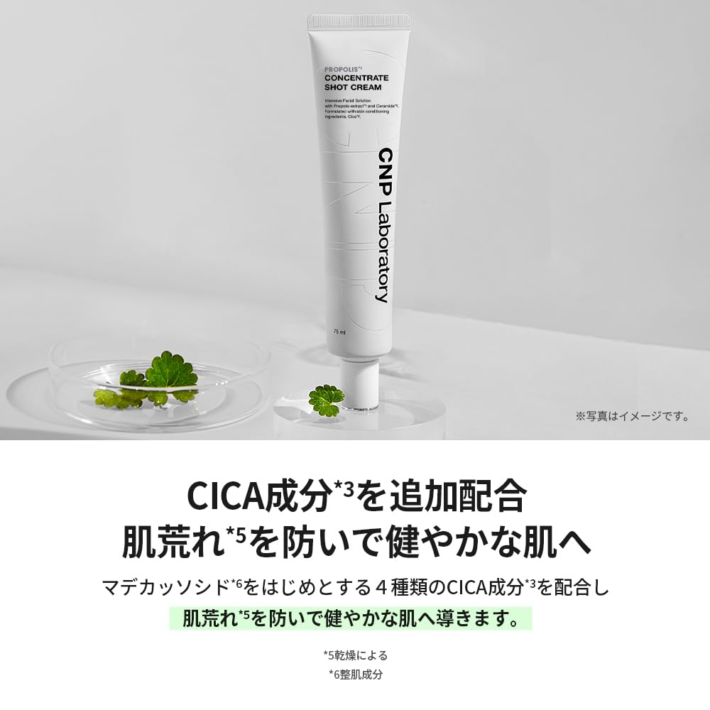 [Propolis Ampoule Active Shot Cream] This rich moisturizing cream contains 1.5 times more propolis extract*1 than the previous product*2. In addition to concentrated ceramide*3, it also contains four types of CICA ingredients*4, which charge moisture while preventing rough skin caused by dryness and promoting healthy skin. *1 Moisturizing ingredients *2 Compared to the previous product "CNP Pro P Cream" *3 Moisturizing ingredients: Ceramide NP *4 Skin conditioning ingredients: Madecassic acid, madecassoside, asiaticoside, asiatic acid