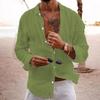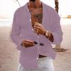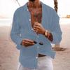 Трансграничная поставка для внешней торговли, мужская новая однотонная свободная рубашка на одной пуговице с лацканами, хлопково-льняная рубашка с длинным рукавом