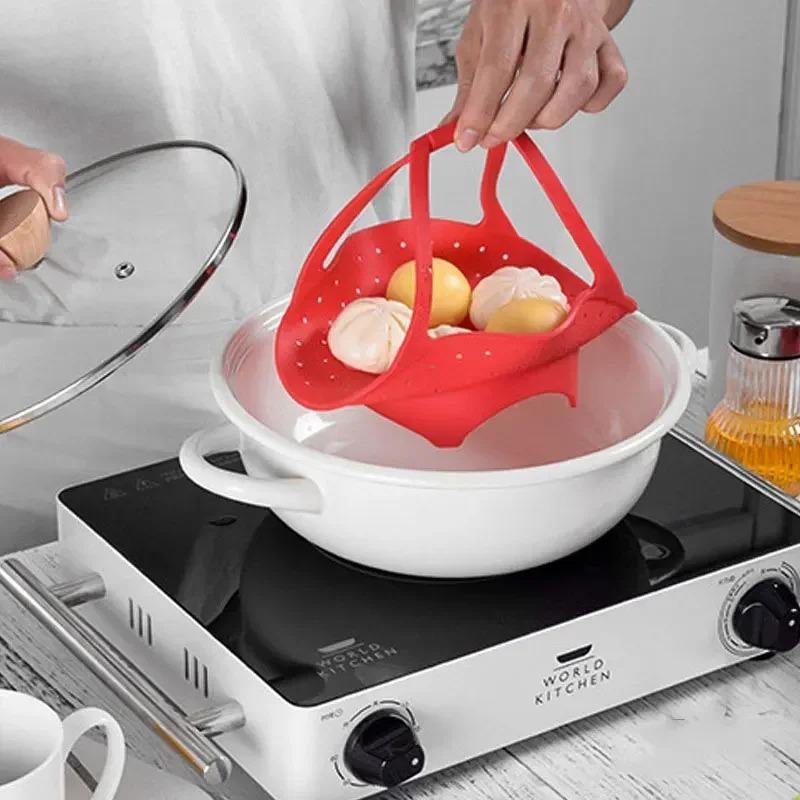 Корзина для пароварки с силиконовым расширением и складная для еды, фруктов и овощей, ящик для пароварки, поднос для приготовления на пару, кухонные инструменты — купить товар онлайн с бесплатной доставкой по всему миру!