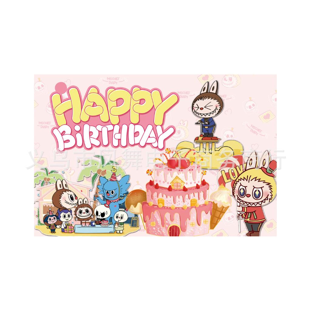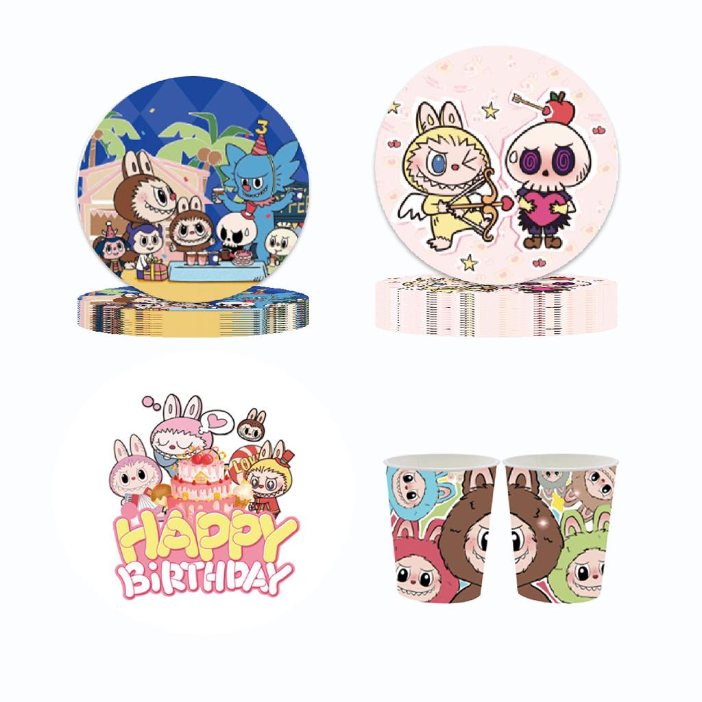 Лабубу Тематическая вечеринка в честь дня рождения Оформление Фон Воздушный шар Обеденная тарелка Бумажная салфетка Стакан Флажок