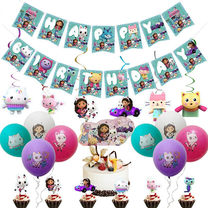 Factory Direct Gaby Doll House Theme Party Decoration Set Paper Plate Paper Tissue Paper Cup Pe Tablecloth Banner Balloon