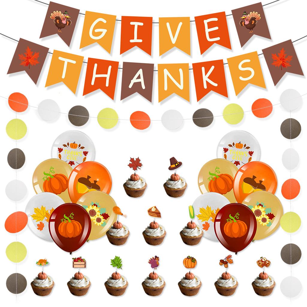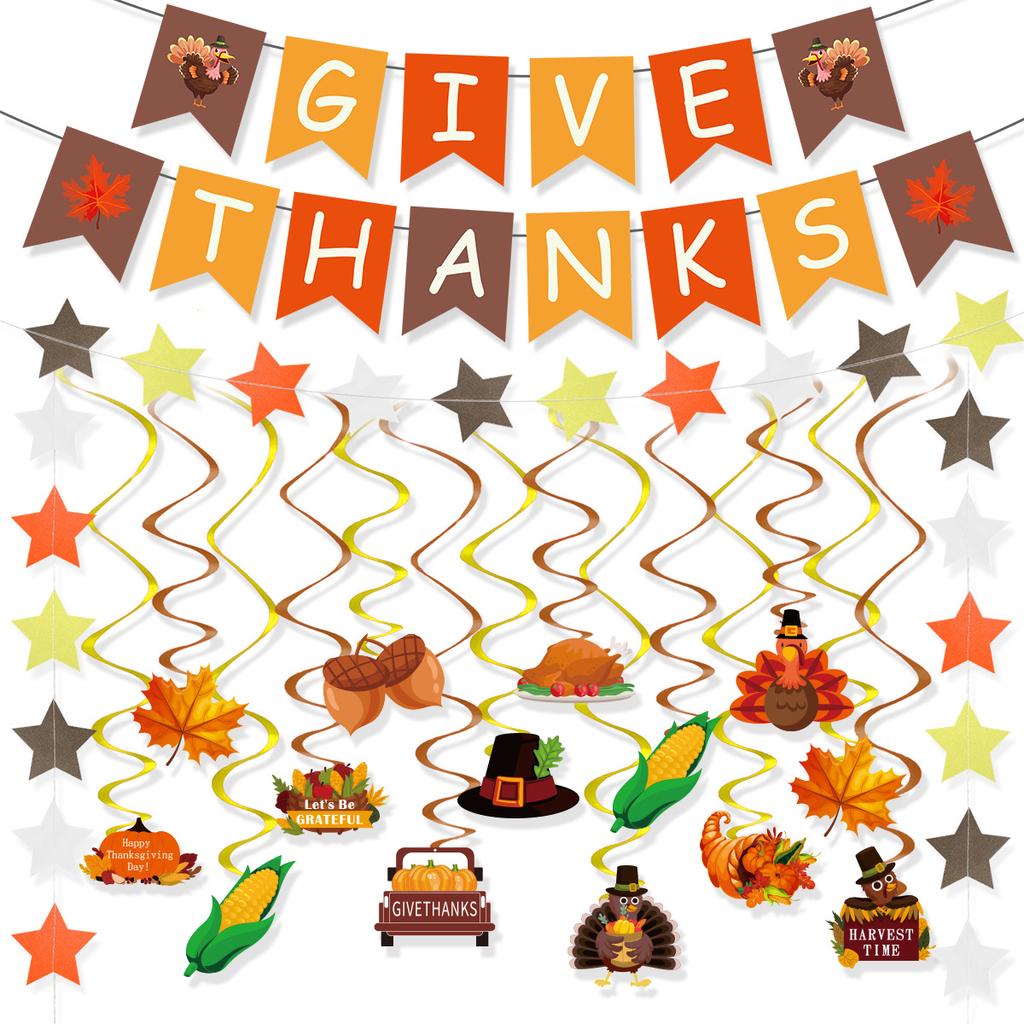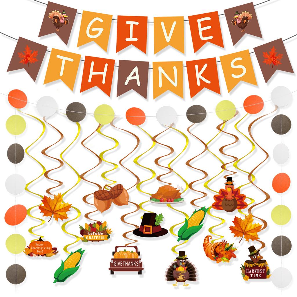 Thanksgiving Give Thanks Pull The Flag And Step On The Line, Latte Flower Spiral Pendant Balloon Set