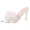 Женские тапочки на высоком каблуке с мехом и шпильками, мюли с открытым носком, женские домашние резиновые туфли Zapatillas Mujer с острым носком, красные, летние, новые сексуальные туфли