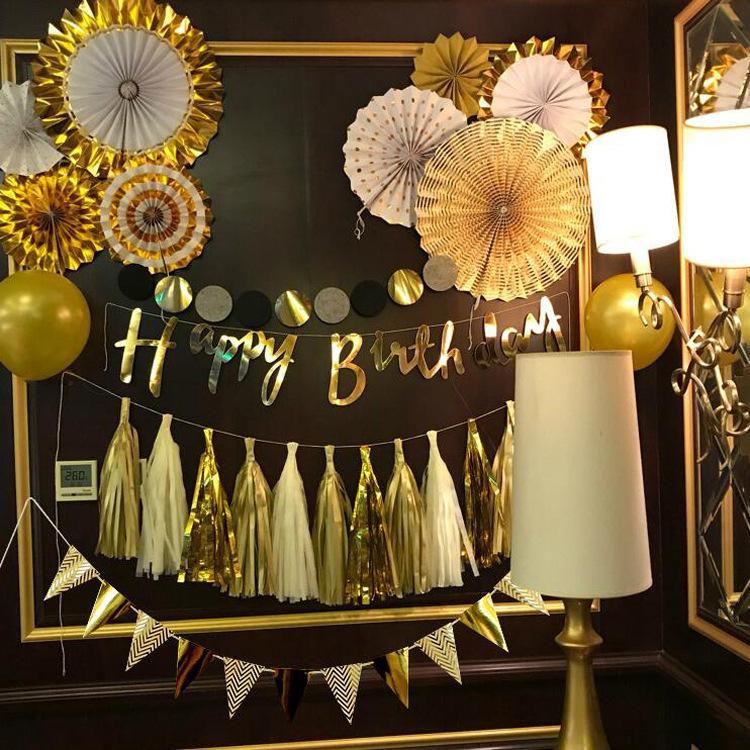 12 Pieces Of Wavy Bronzing Pennant Flag Children'S Birthday Party Decoration Hanging Flag Birthday Pulling Flag Banner Customization