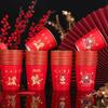 Red New Year Party Tableware Paper Plate Paper Tissue Paper Cup Tablecloth Happy New Year Chinese New Year