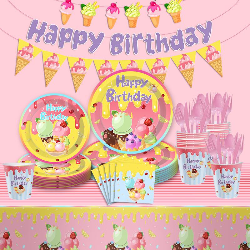 Десерт Мороженое Вечеринка Тканевое Украшение Лето Одноразовые Флаг Бумажная Тарелка Бумажный Стакан Сервировка Стола Набор