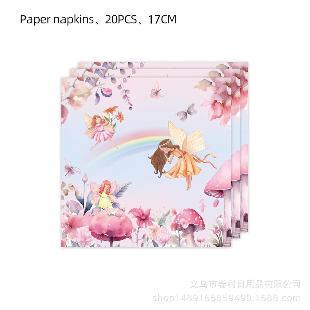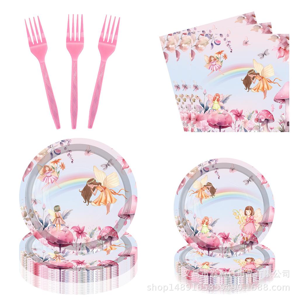 Принадлежности для вечеринки «Цветочная фея» Принцесса-эльф Композиция на день рождения Декоративная бумажная тарелка Бумажный стакан Скатерть Баннер Флажок для торта