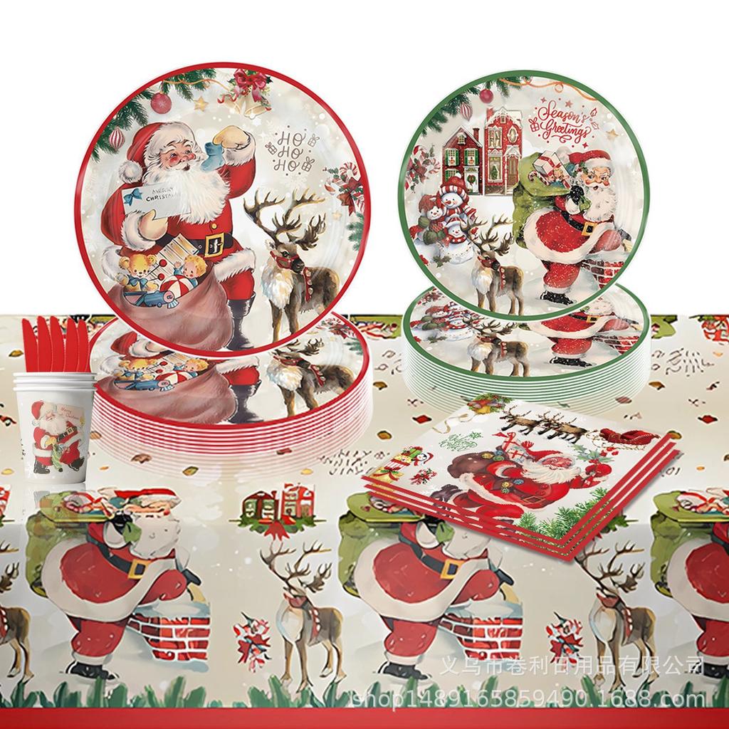 Рождественская тематическая вечеринка принадлежности украшение Санта Клауса посуда одноразовые бумажные тарелки бумажные стаканчики бумажные салфетки флаг скатерть