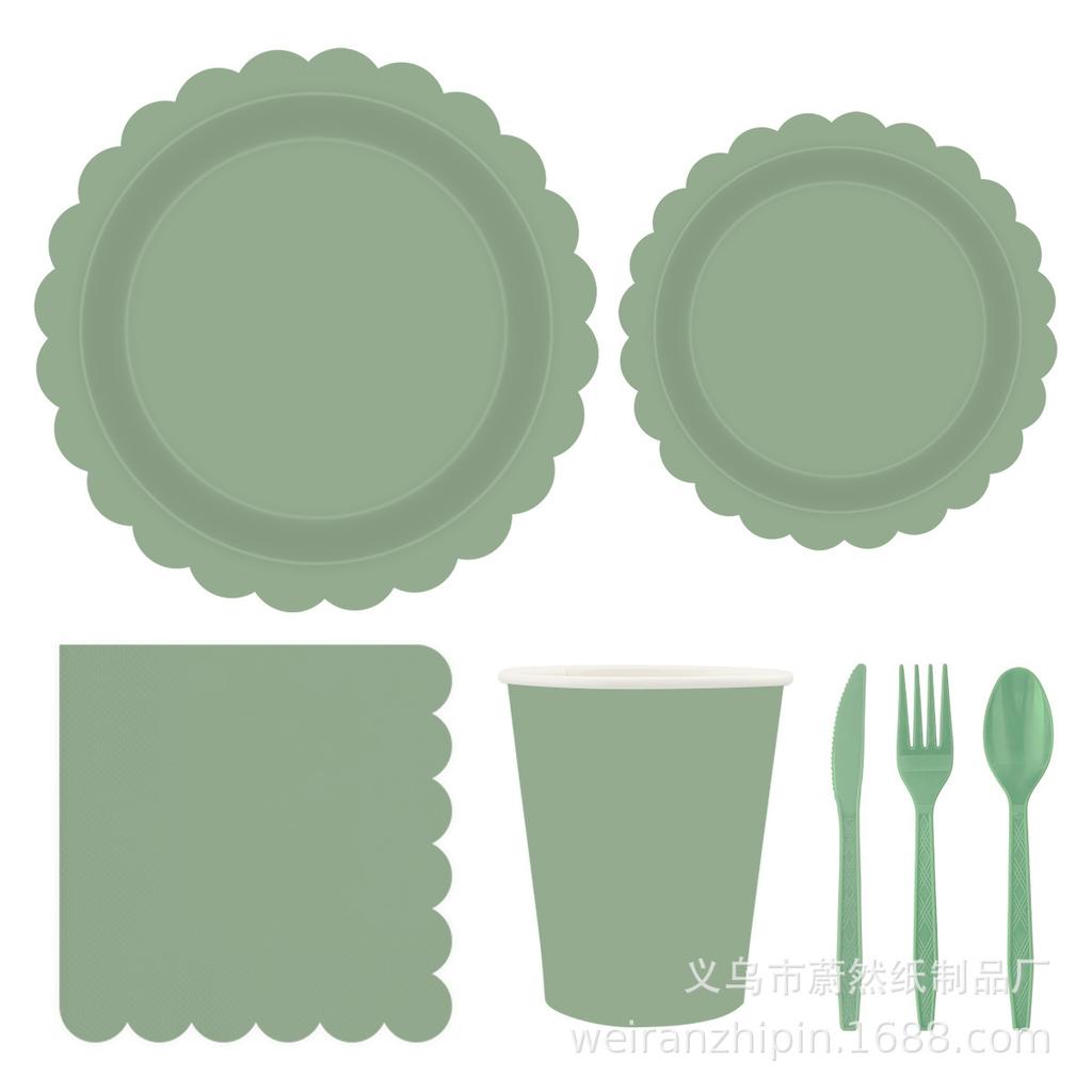 Однотонная бумажная тарелка, бумажный стаканчик, бумажное полотенце, нож, вилка, ложка, одноразовый набор для украшения вечеринки, принадлежности для пикника