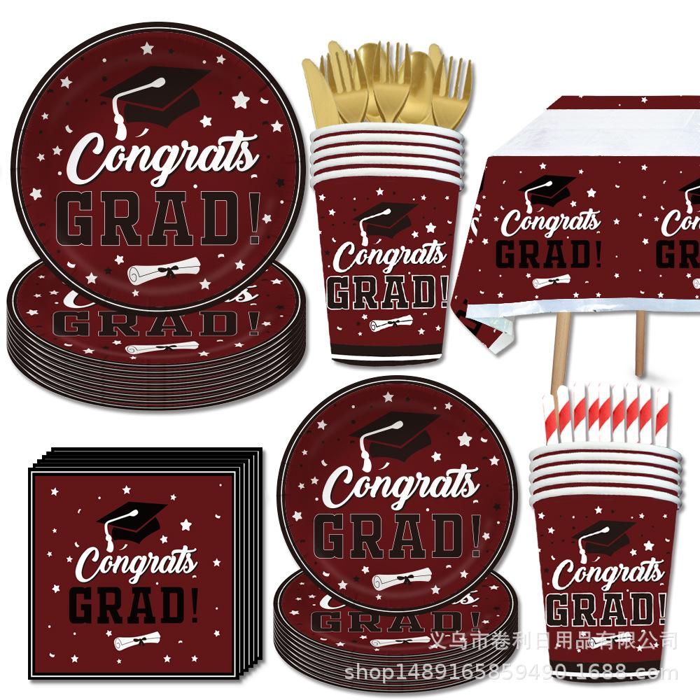Красный и черный принадлежности для вечеринки в сезон выпускных, украшение для вечеринки в сезон выпускных, баннер, флаг, реквизит для фото, праздничная посуда