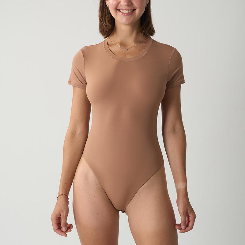Боди с короткими рукавами Цельное боди для похудения в стиле пилатес Боди для йоги с эффектом обнаженности