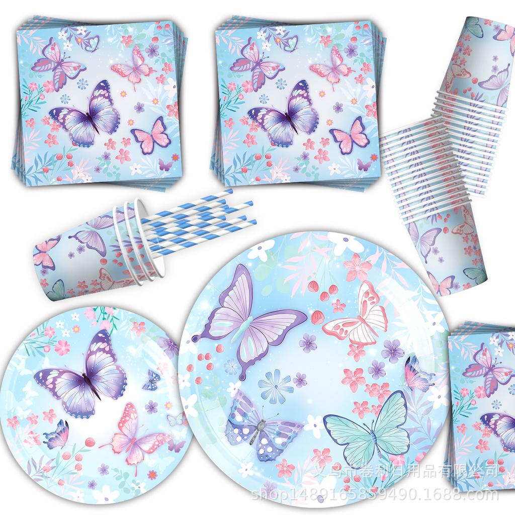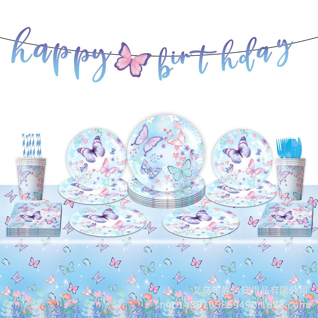 Персонализированная вечеринка в тематике бабочек, синяя бабочка, украшение для вечеринки, реквизит для оформления, баннер, флажки, бумажная тарелка, бумажное полотенце, бумажный стакан