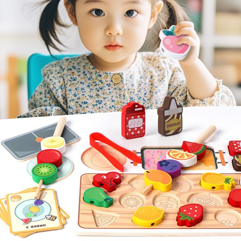 Образовательная головоломка Ранние деревянные игрушечные продукты Фруктовый шашлык для детей Подарок Веселье