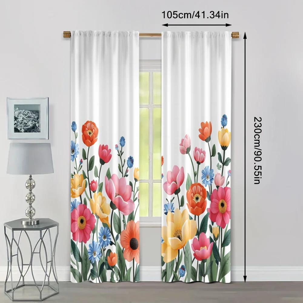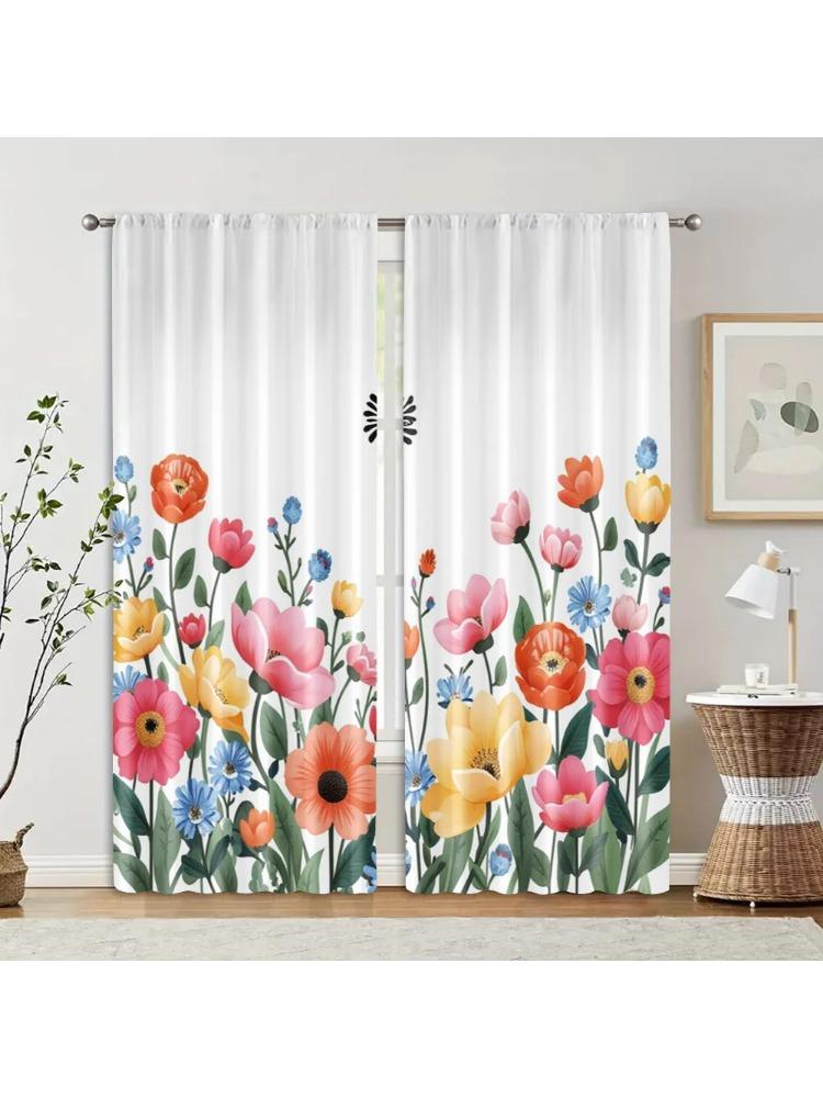 2Pcs, Curtains&Drapes Colorful Plants Watercolor Machine Washable (Without Rod) Art Deco Festive Ldeal For Kitchen Living Room