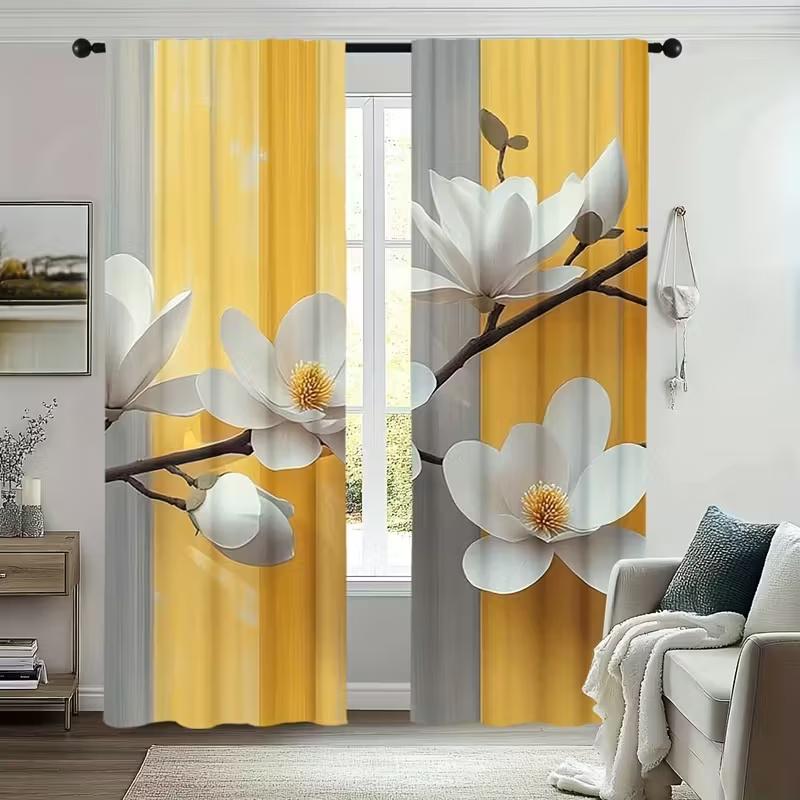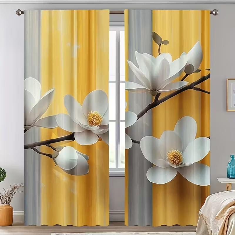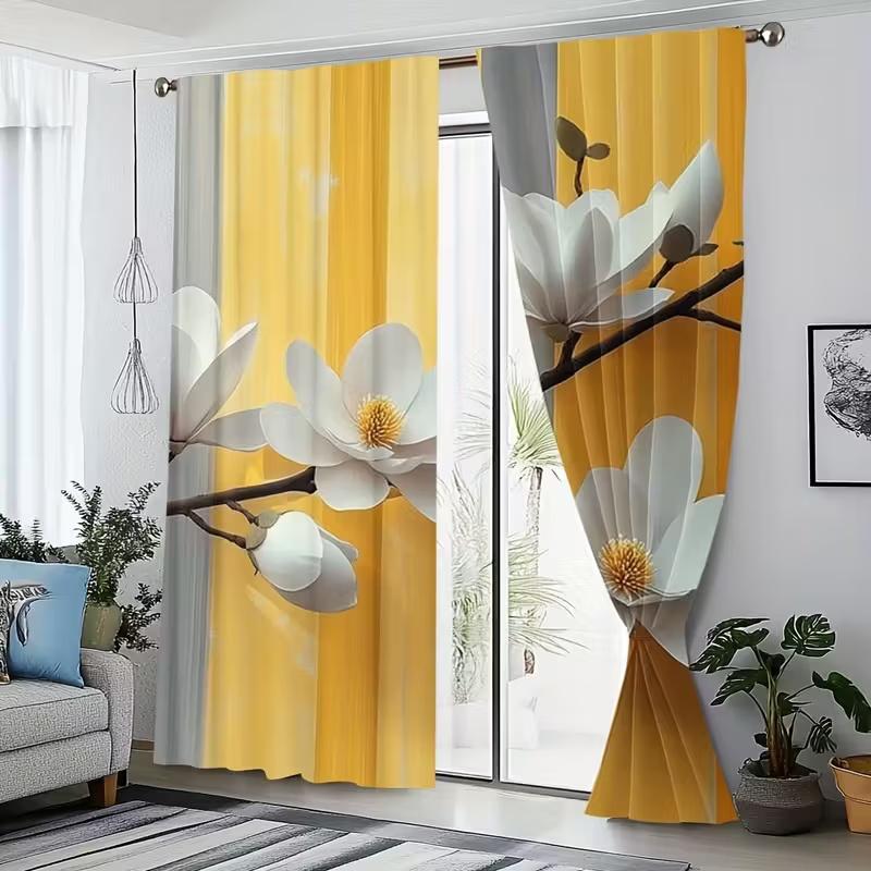 2 шт. штор с принтом белых цветов, Подходят для украшения спальни, гостиной, кухни, Домашнее украшение, Украшение окна