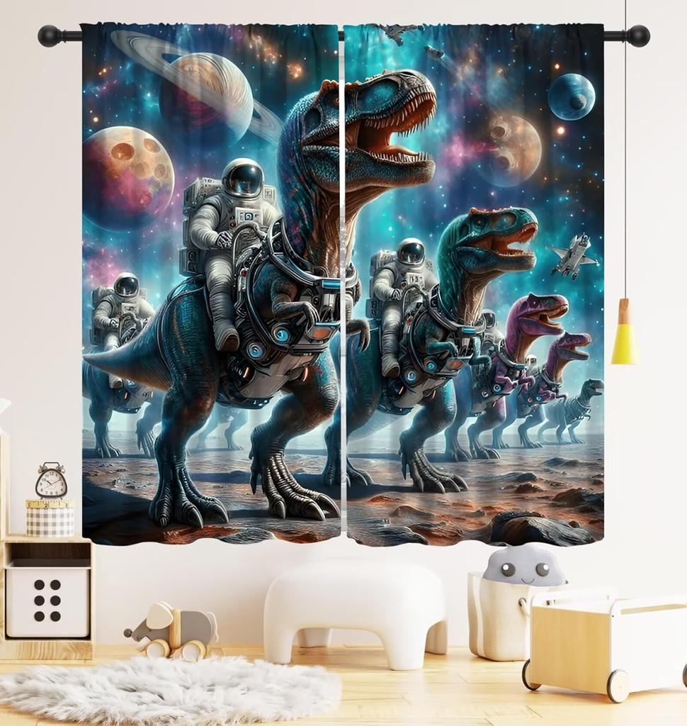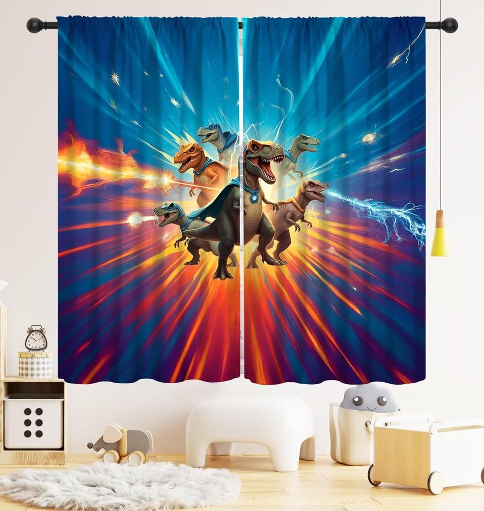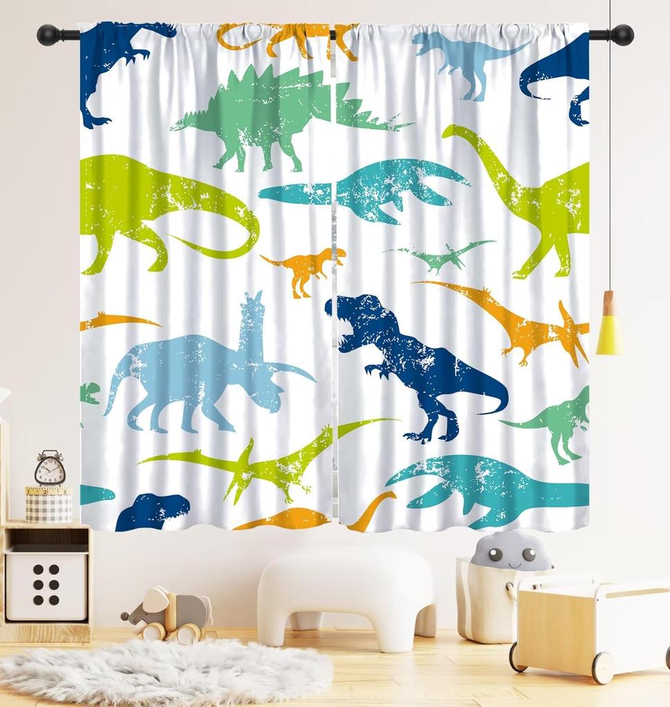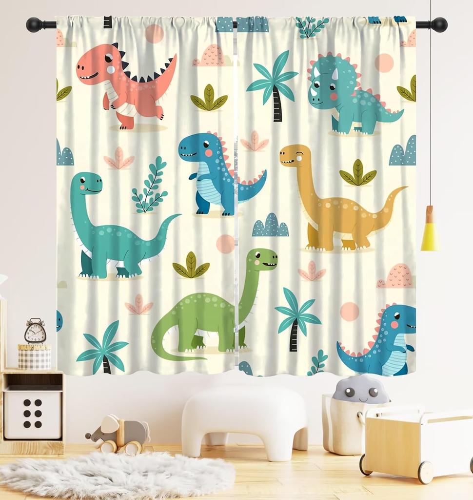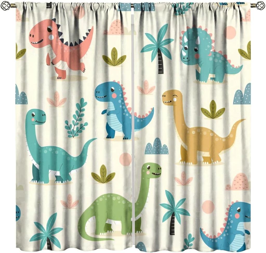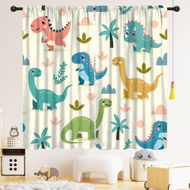 Детские шторы с динозаврами, Милая штора-блэкаут с динозаврами, Мультяшный узор с динозаврами, Оформление окон, Драпировки, Детская, Спальня для мальчика, Спальня для девочки
