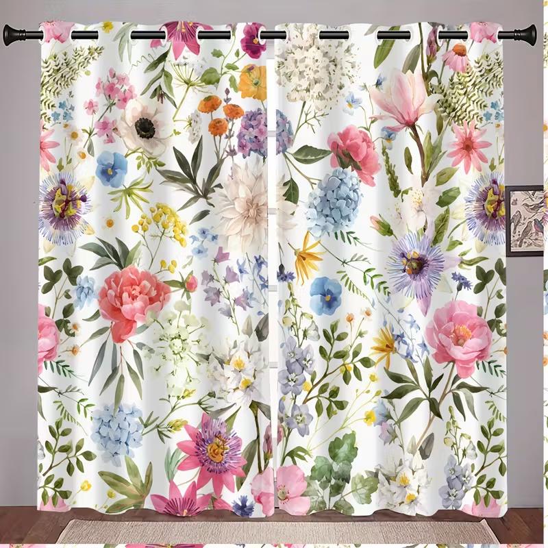 2 шт. штор с принтом листьев и цветов, подходят для украшения спальни, гостиной, кухни, домашнего декора, украшения окна