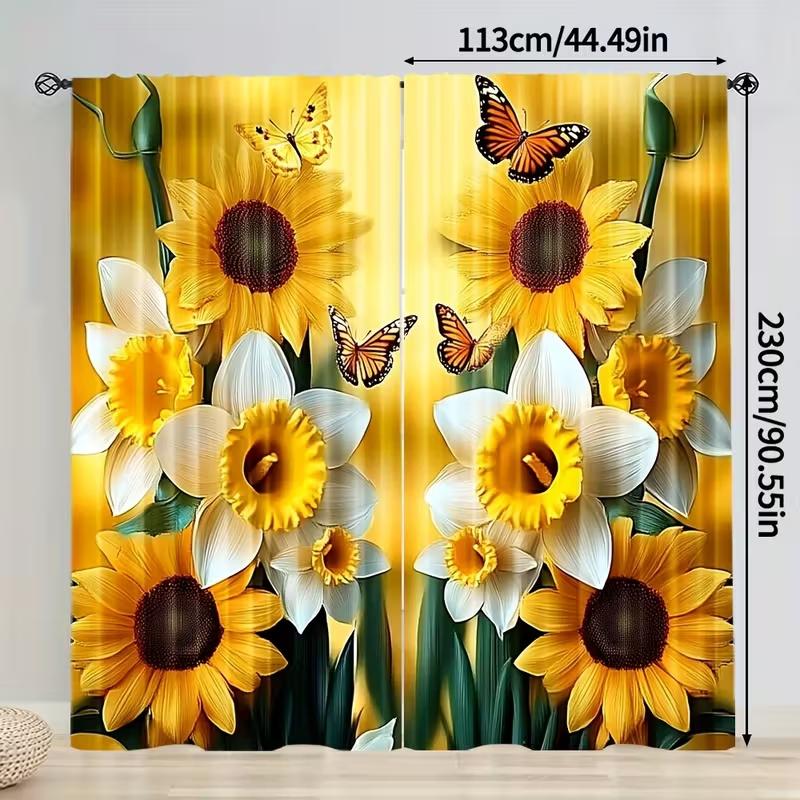 2 шт. штор с принтом подсолнуха и бабочки, подходят для украшения спальни, гостиной, кухни, домашнего декора, украшения окна