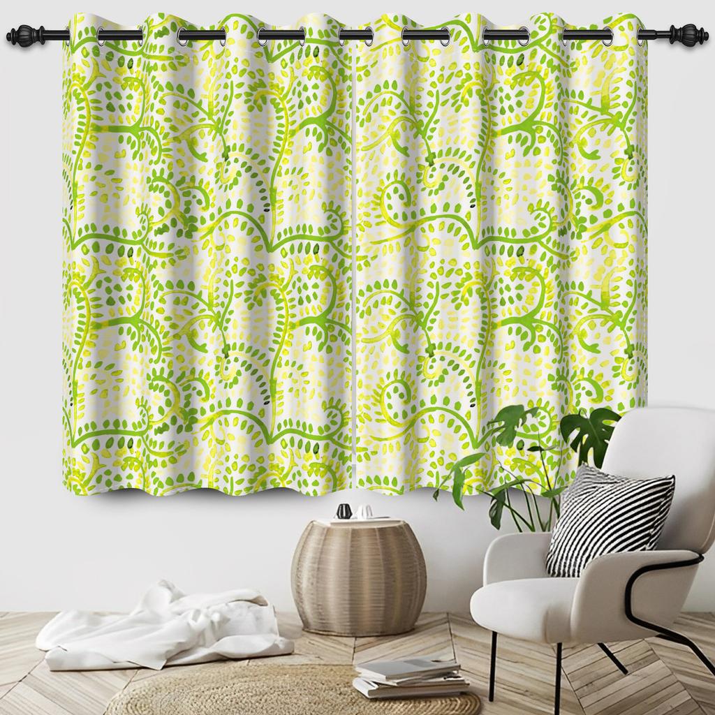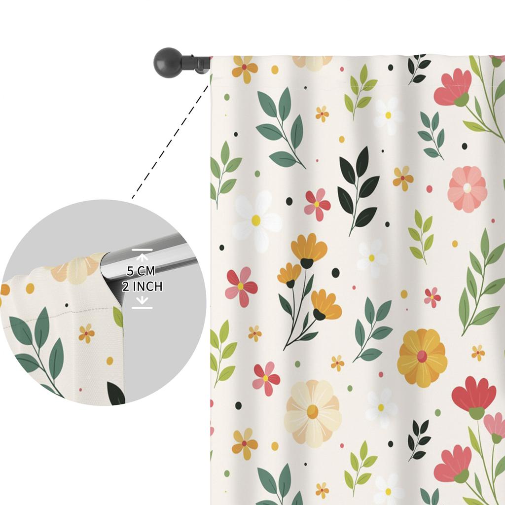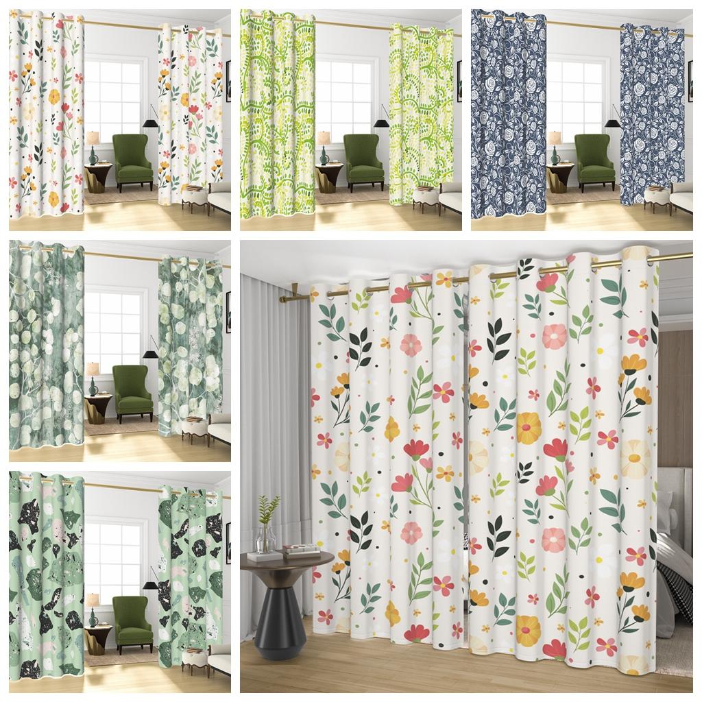 2Pcs/Set Green Floral Polyester Window Curtains Pastoral Style Nature Flowers Leaves Bathroom Bedroom Decor Blackout Curtains