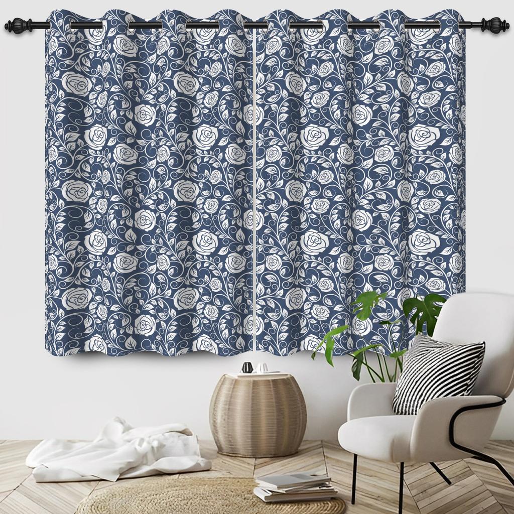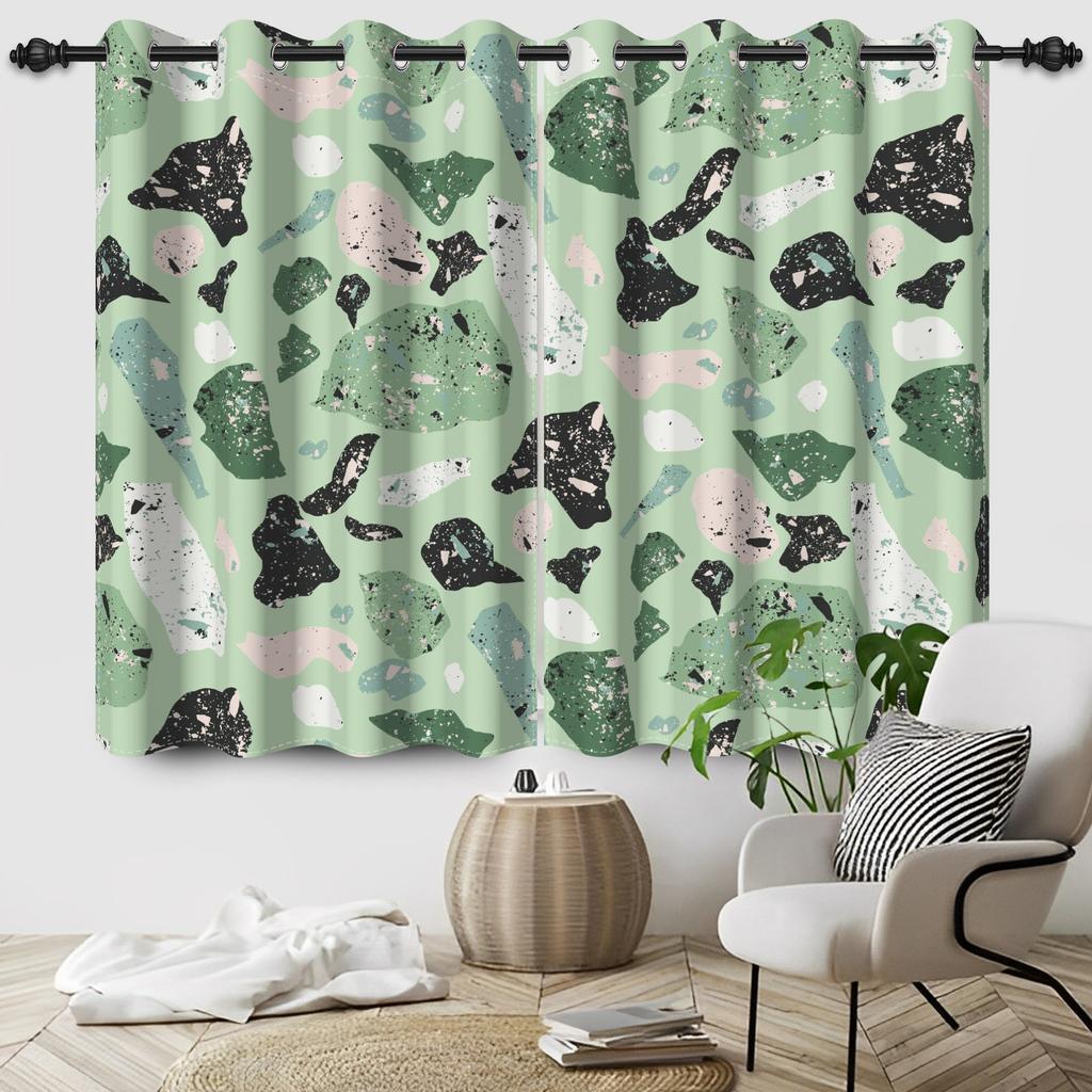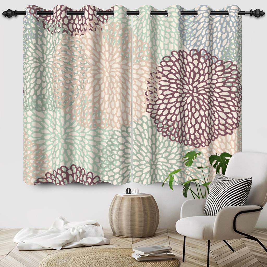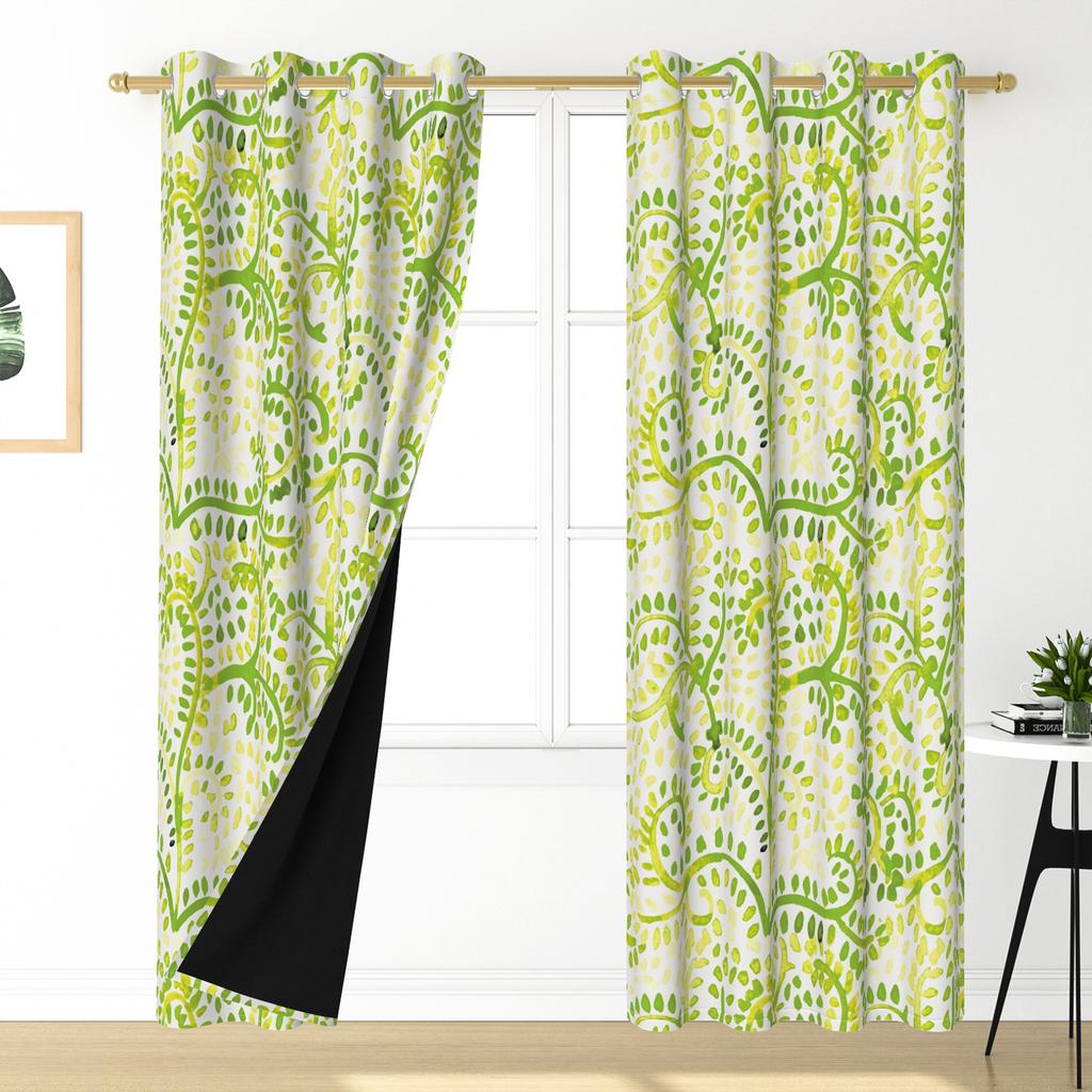 2Pcs/Set Green Floral Polyester Window Curtains Pastoral Style Nature Flowers Leaves Bathroom Bedroom Decor Blackout Curtains