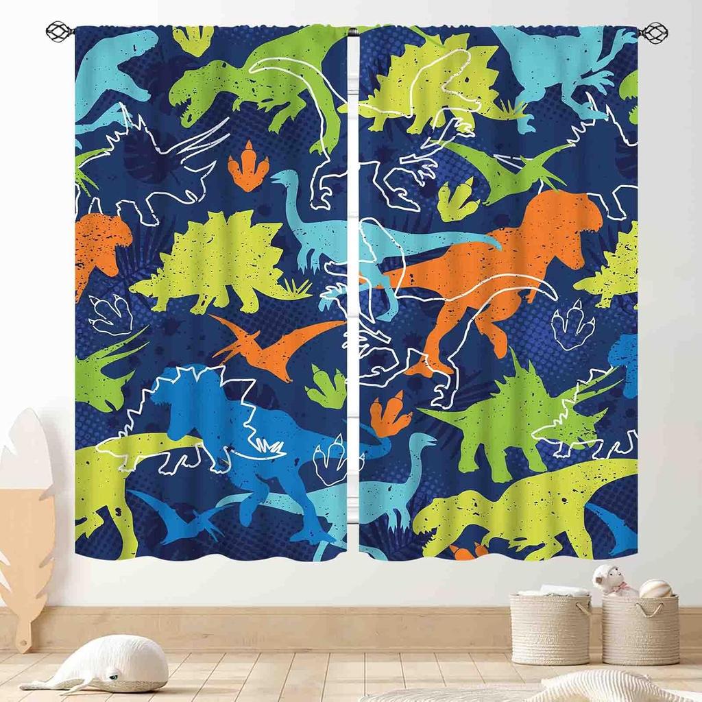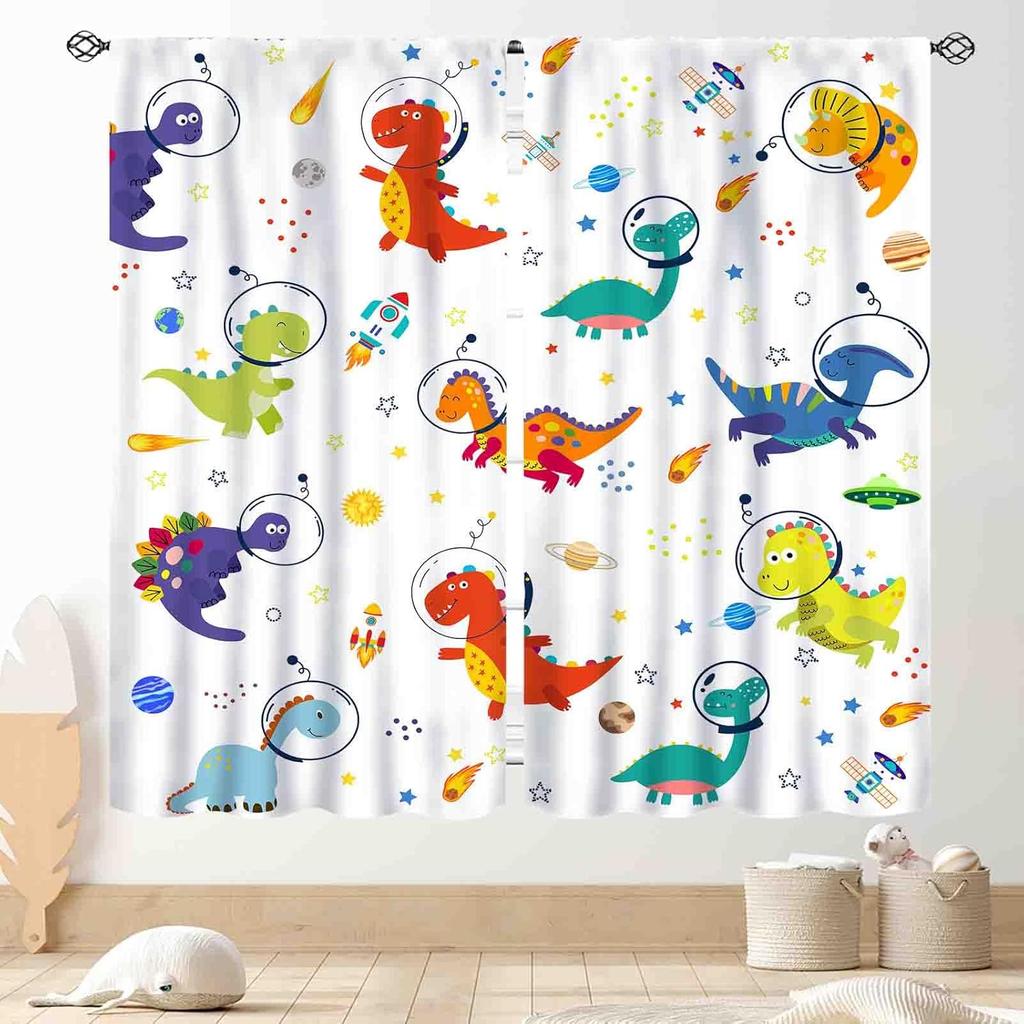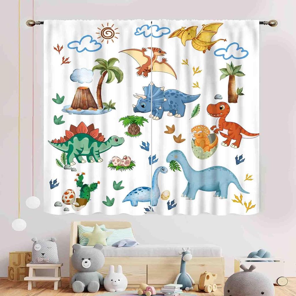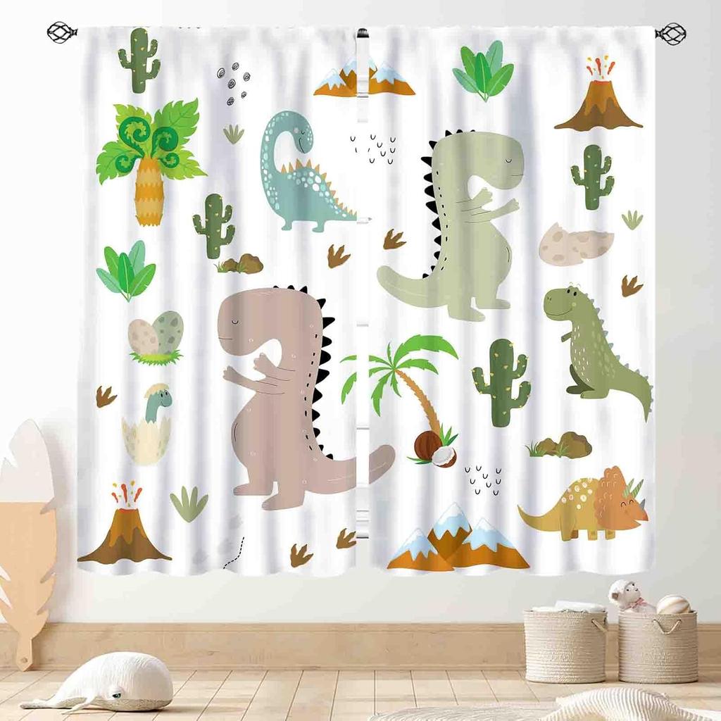 Детские шторы с динозаврами для комнаты мальчика, мультяшные динозавры, забавные, милые, сафари-животные, красочные оконные шторы, драпировка для