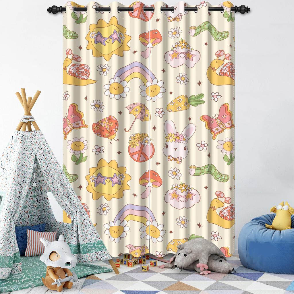 Cartoon Pattern Blackout Curtains 2Pcs Educational Fun Design For Children'S Room Living Room Bedroom Window Decor Grommet Top