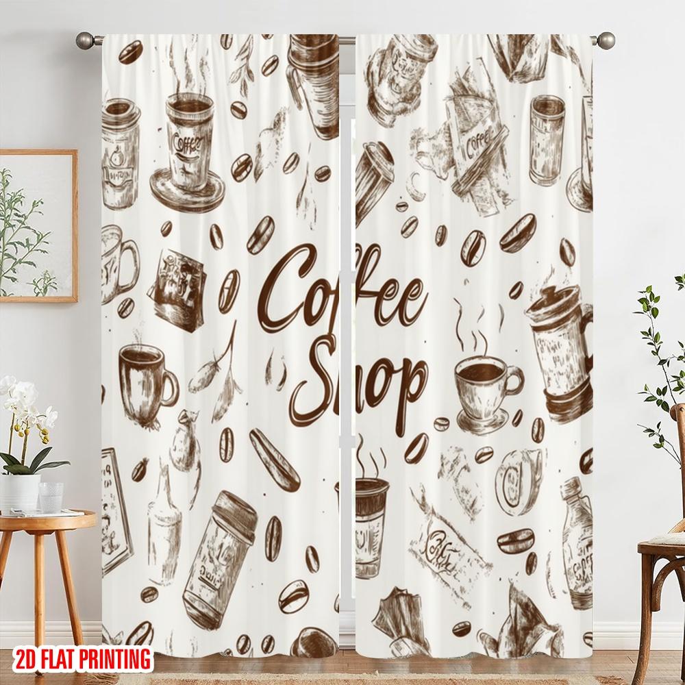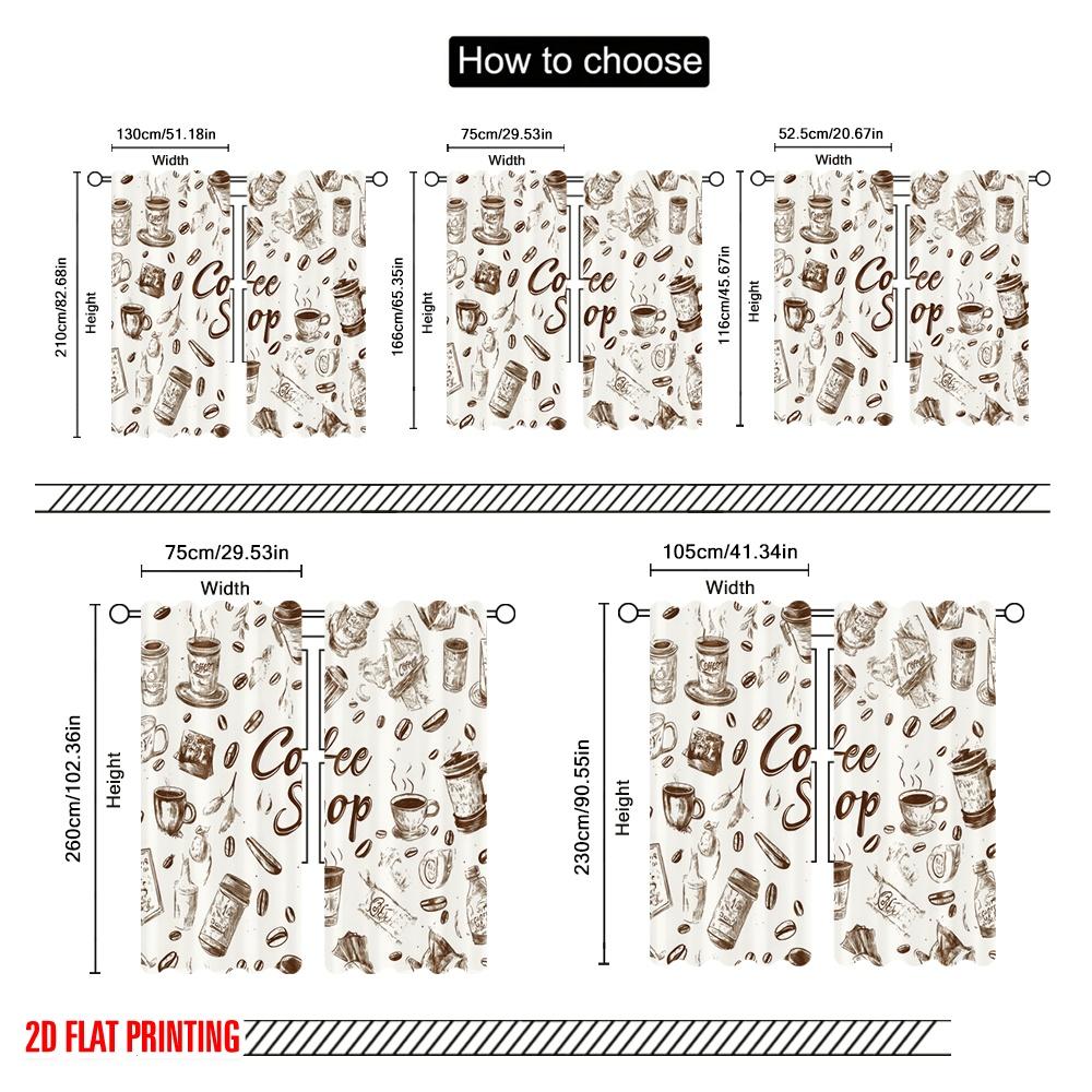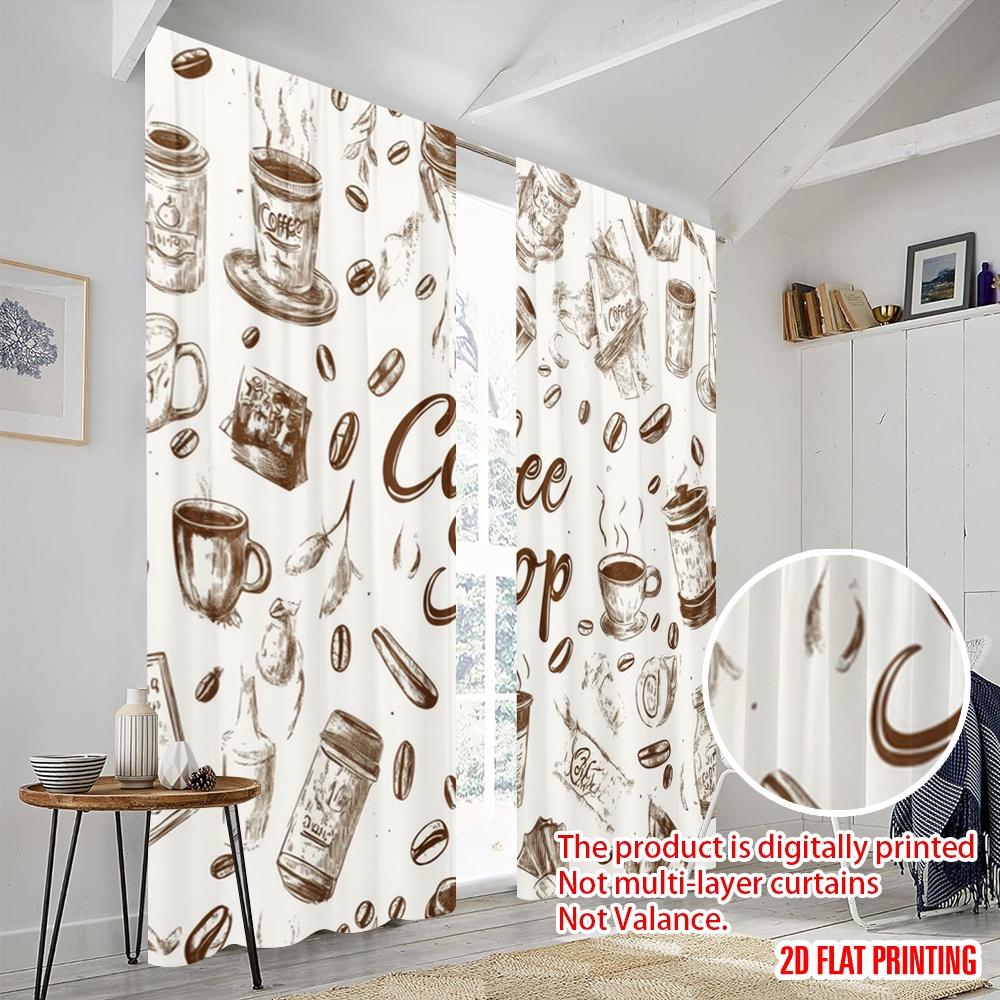2Pc,2D Plane Printing Pattern Curtains Coffee Doodles Durable 100% Polyester Fabric (Without Rod) Gifts For Living Room,