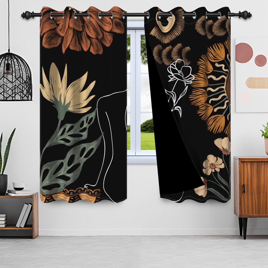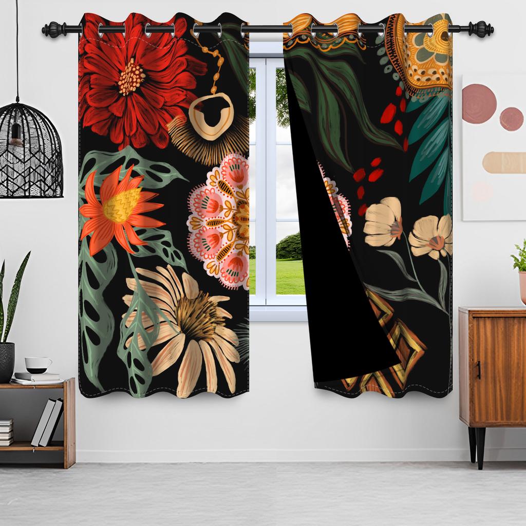 2 шт./компл. Бохо цветочные светонепроницаемые шторы для спальни, винтажные богемные тропические цветы, интерьерные шторы с люверсами, оконные драпировки