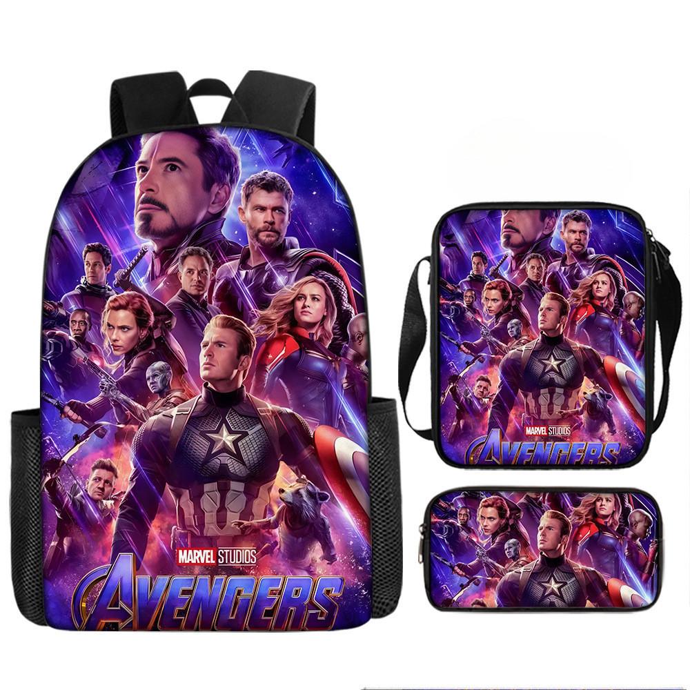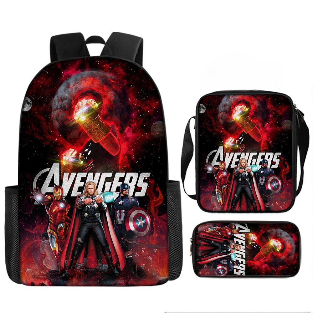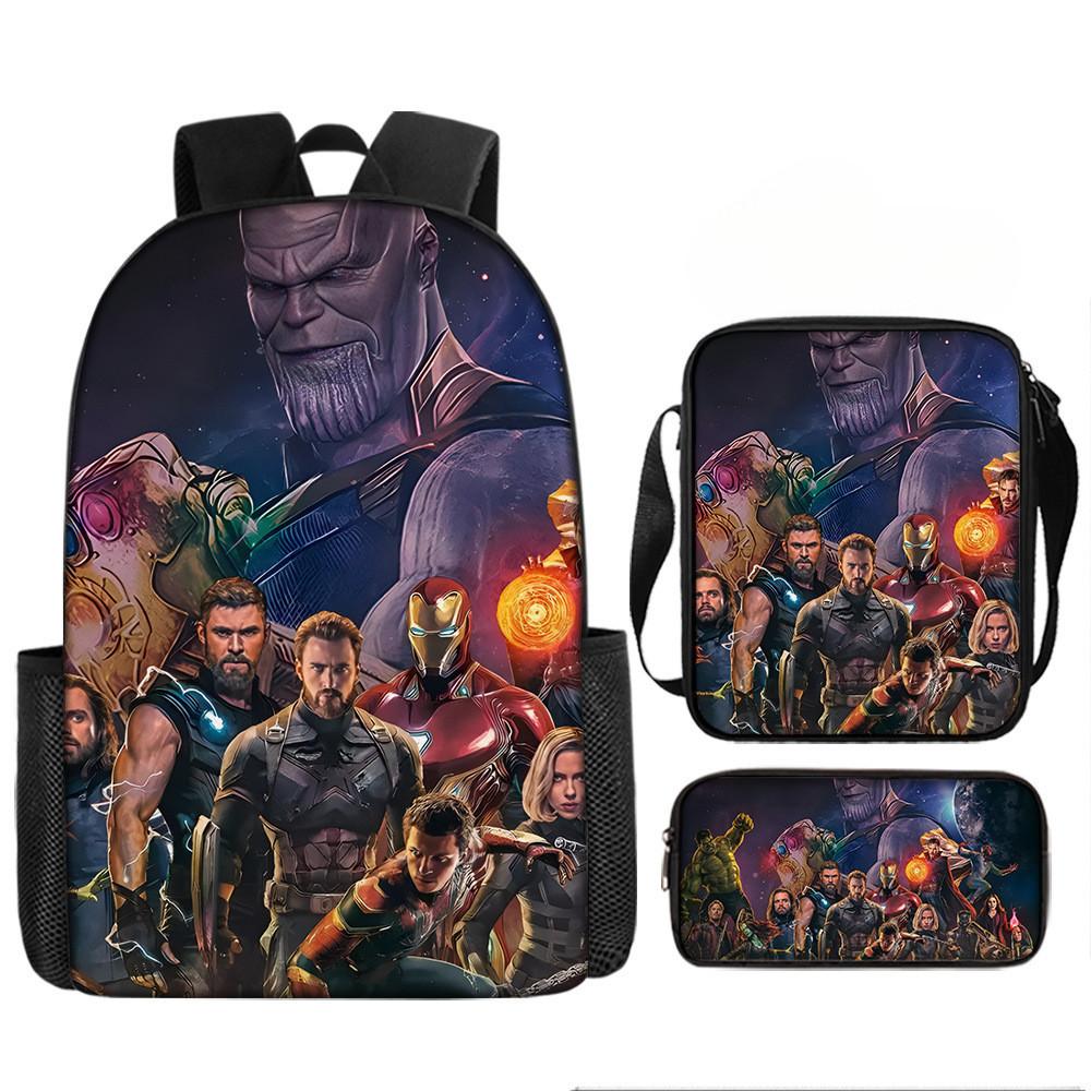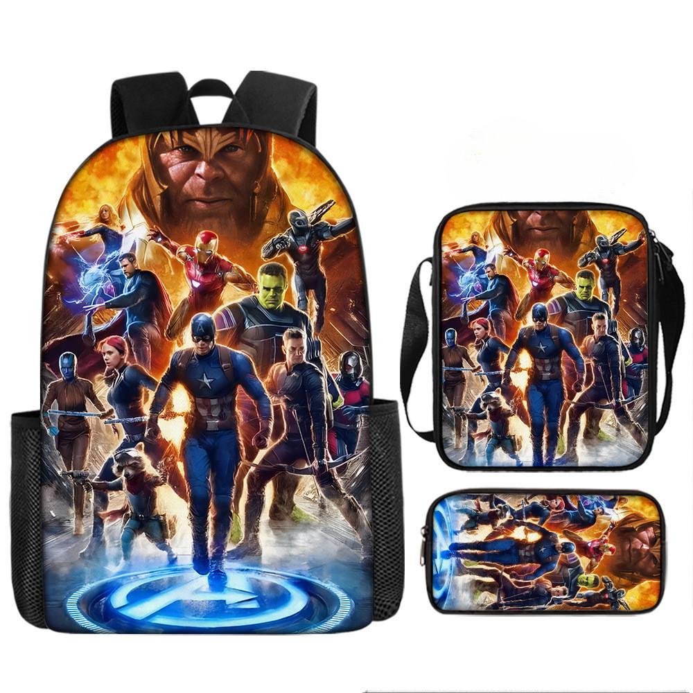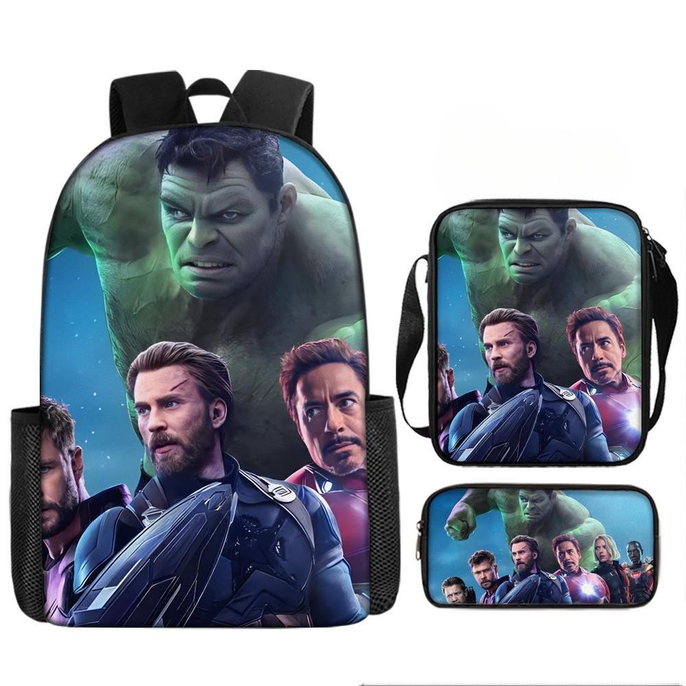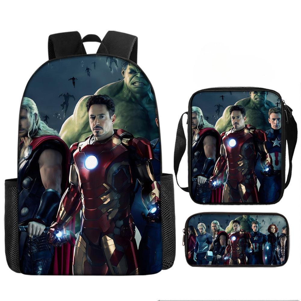 Набор рюкзаков на тему «Мстители» разработан для учеников начальной школы, предлагая практичное и стильное решение для повседневного использования.. Этот набор из трех предметов включает 17-дюймовый рюкзак, сумку через плечо и пенал, все изготовленные из прочной ткани Оксфорд с полиэстеровой подкладкой.. Легкая конструкция обеспечивает удобство переноски, а дышащий дизайн и мягкие плечевые лямки обеспечивают повышенный комфорт при длительном ношении.. Этот набор с яркими 3D цифровыми принтами и узорами в стиле мультфильмов сочетает в себе функциональность и игривую эстетику.